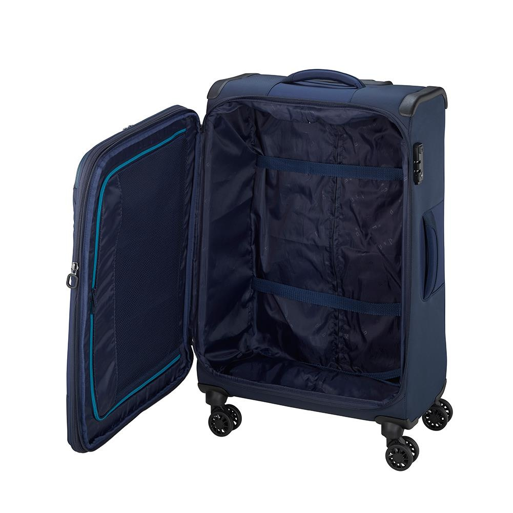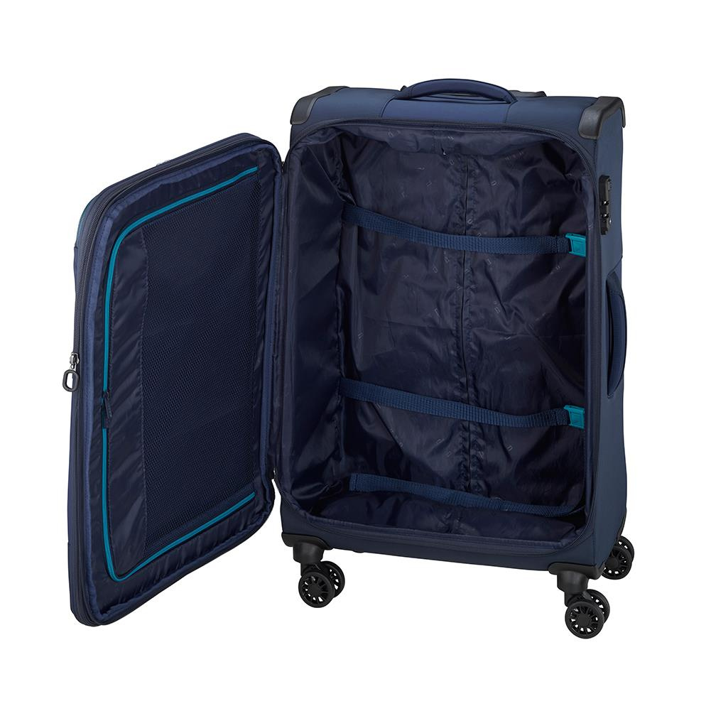 - Wnętrze z wieloma przegródkami i paskiem na bagaż