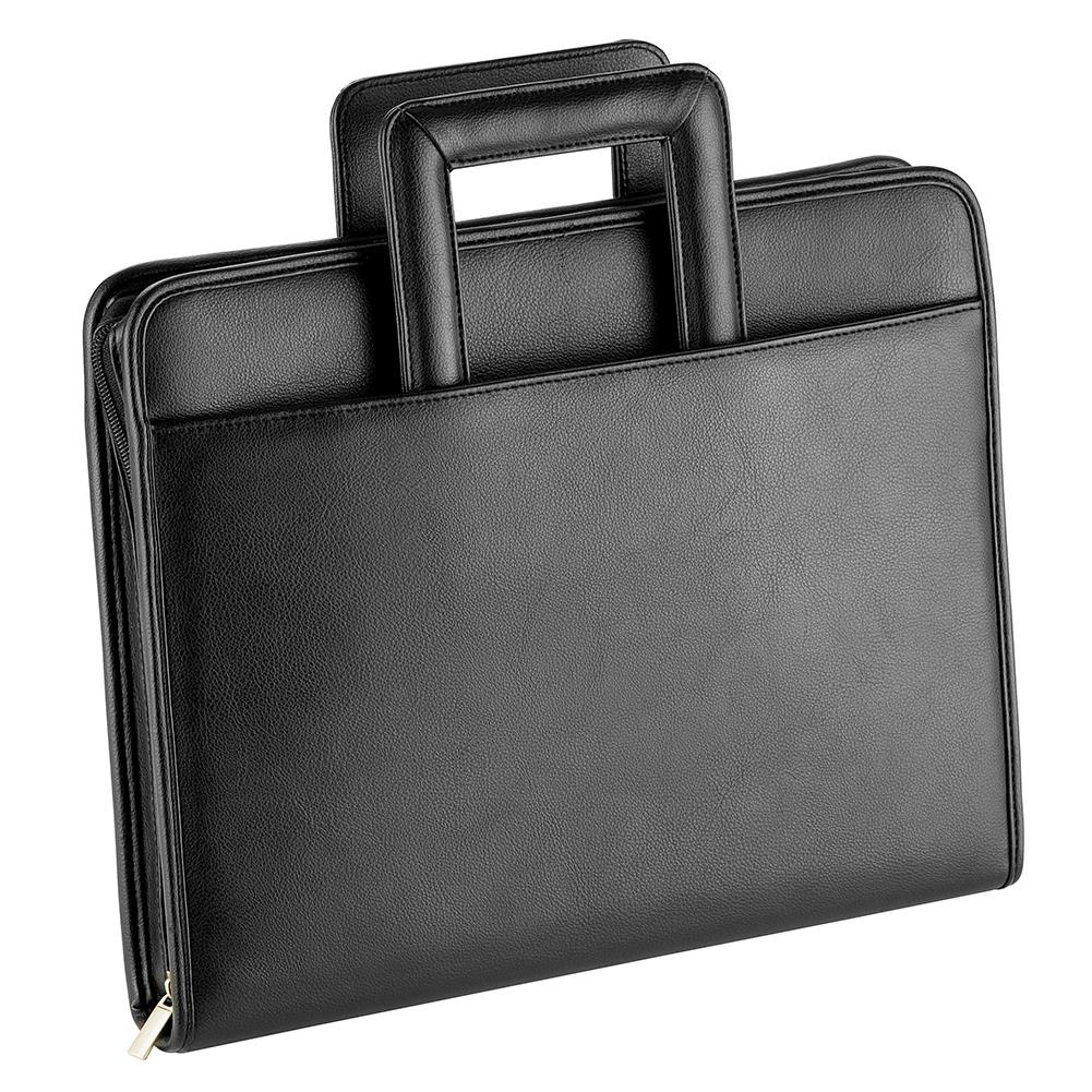 Teczka na dokumenty wykonany ze skóry naturalnej i materiału poliuretanowego z mechanizmem pierścieniowym.