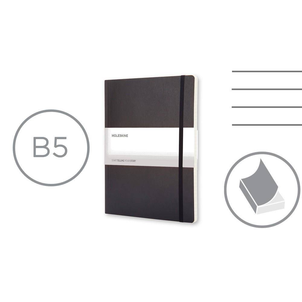 Notatnik XL (ok. B5) MOLESKINE, miękka okładka, 192 strony w linie, kieszeń wewnętrzna, zakładka i elastyczna opaska do zamykania