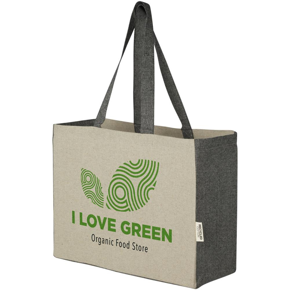 Torba na zakupy z płaskim dnem o gramaturze 190 g/m² z modnymi kontrastującymi bokami Torba na zakupy Pheebs jest wykonana z przyjaznej dla środowiska, przedkonsumenckiej bawełny