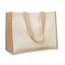 Jutowa torba na zakupy, wewnątrz laminowana, z zewnątrz płócienna.