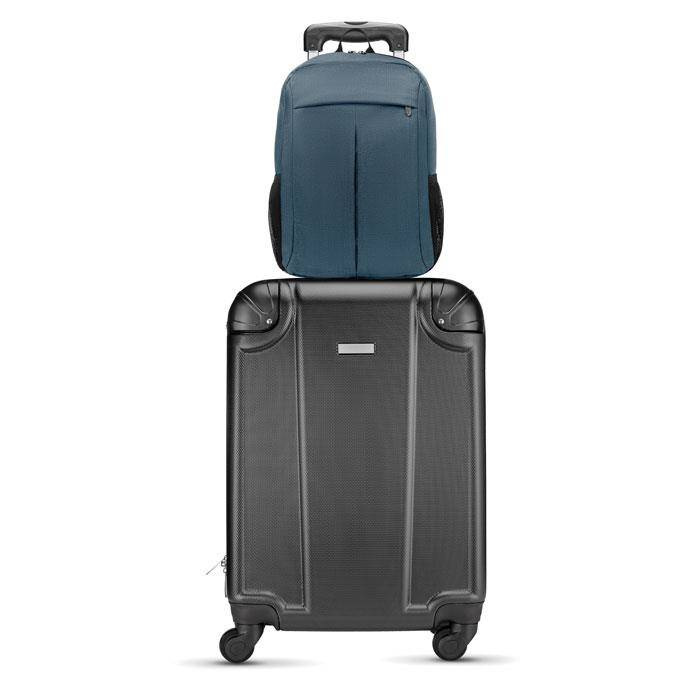 Zawiera wewnętrzną kieszeń na laptopa 15’’ i jedną przednią zamykaną na suwak.