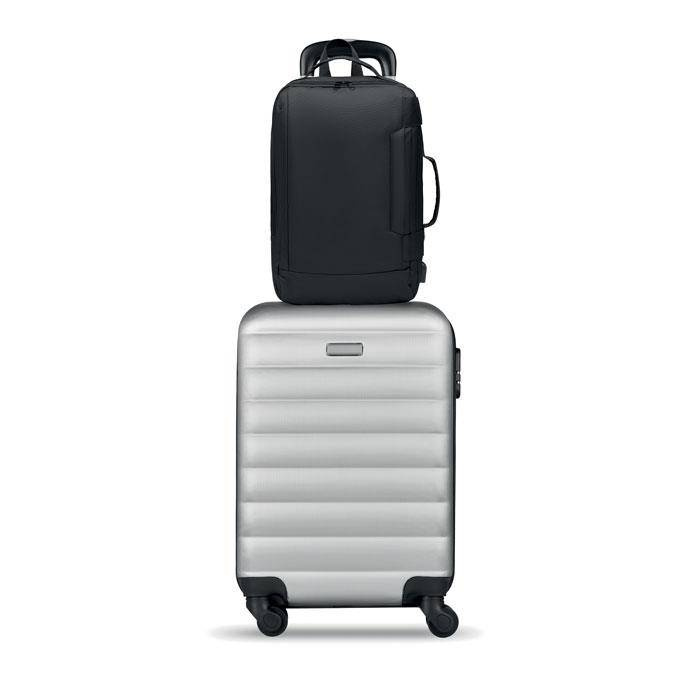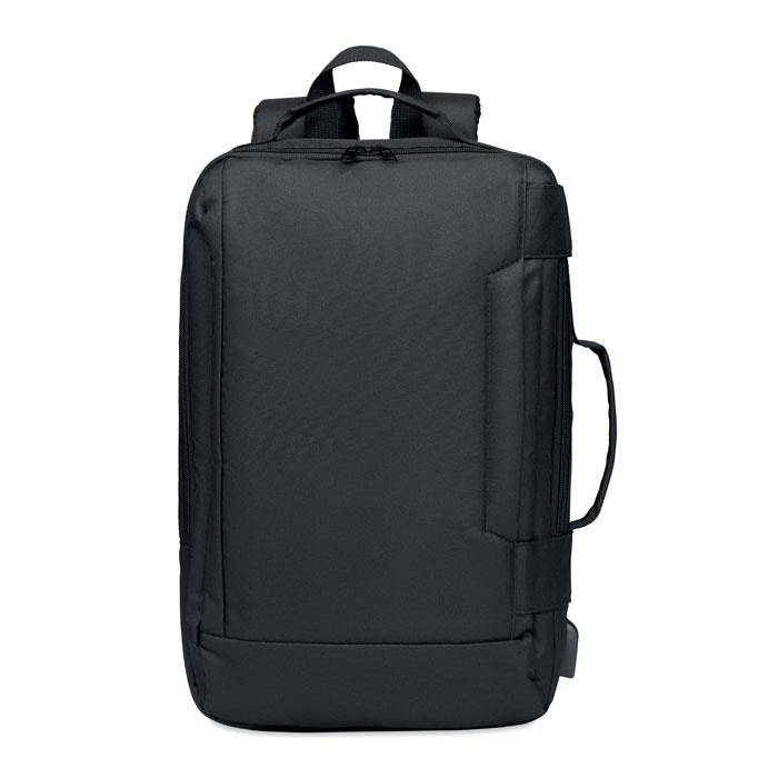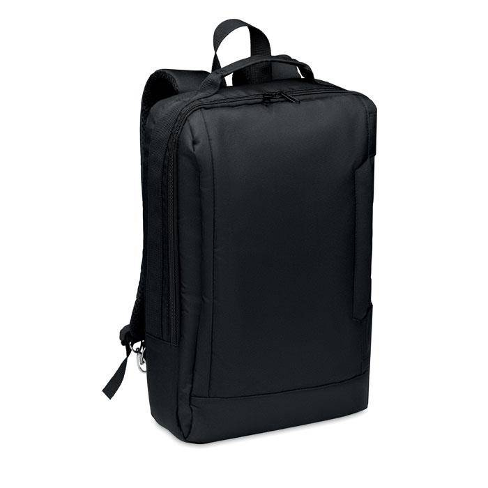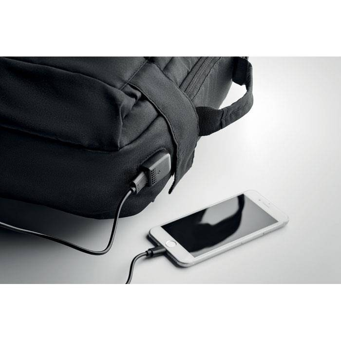 Plecak na komputer z wyściełanym paskiem na ramię z poliestru 300D RPET, zawiera jedną główną komorę wewnętrzną na 16-calowego laptopa i kabel USB do ładowania.