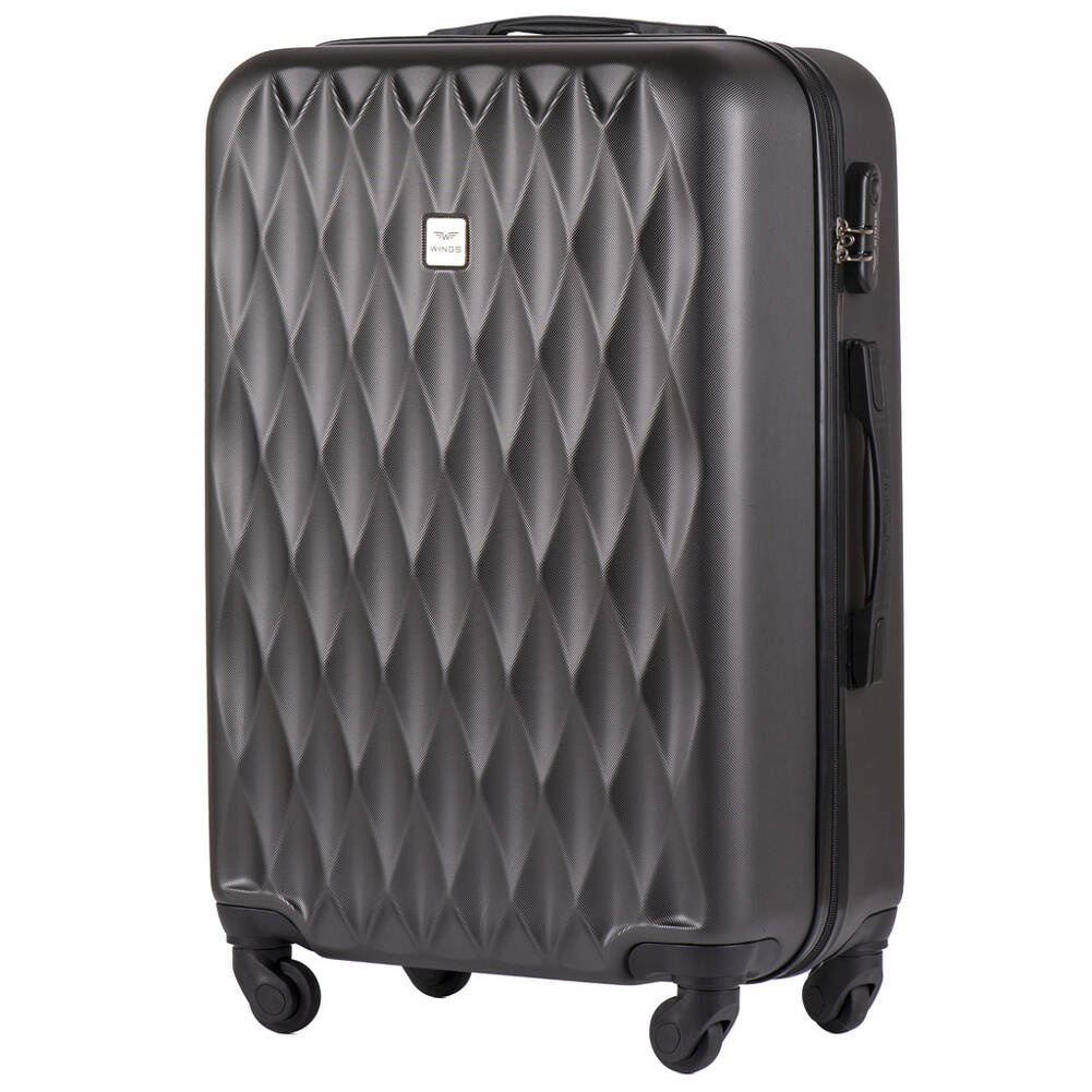 Nowoczesny, lekki model wykonany z bardzo wytrzymałego i odpornego na zarysowanie ABS-u, z dwupoziomową teleskopową rączką. Zewnętrzne, przyjemne w dotyku gumowe uchwyty oraz zamek szyfrowy uniemożliwiający dostanie się do wnętrza osobom niepożądanym. Trwały, duraluminiowy stelaż wbudowany w walizkę. Wyposażony w cztery, obrotowe kauczukowo-gumowe kółka, które zapewniają stabilność oraz lekkość prowadzenia w dowolnym kierunku. Wnętrze w ciemnym sygnowanym kolorze dzielone zamkiem błyskawicznym na dwie funkcjonalne komory.