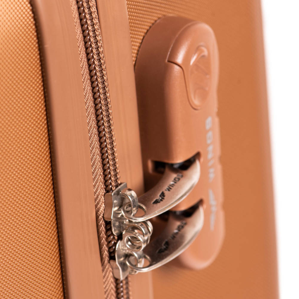 Wykonana z wysokiej jakości tworzywa ABS, dzięki któremu możemy być pewni o należytą ochronę naszego bagażu. Klasyczna forma walizki została uzupełniona logiem WINGS umieszczonym zarówno na froncie jak i w dolnej części tyłu walizki.