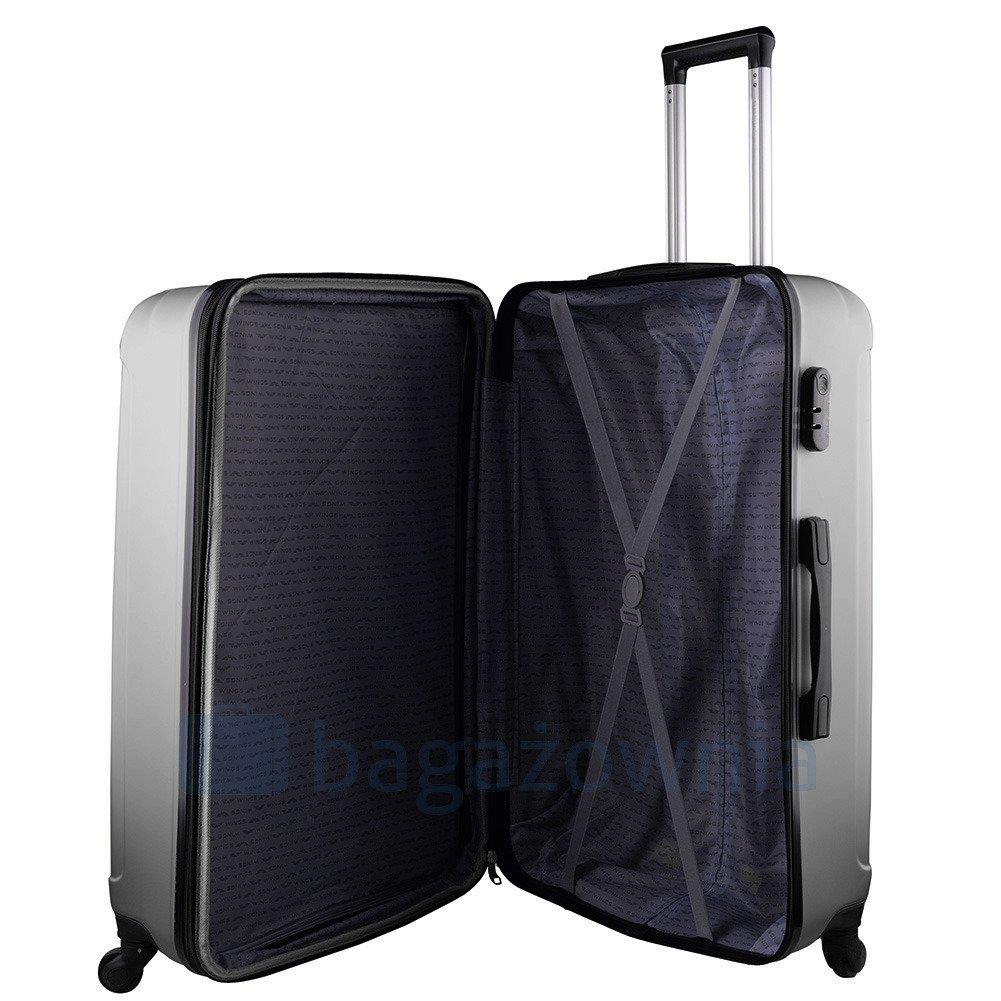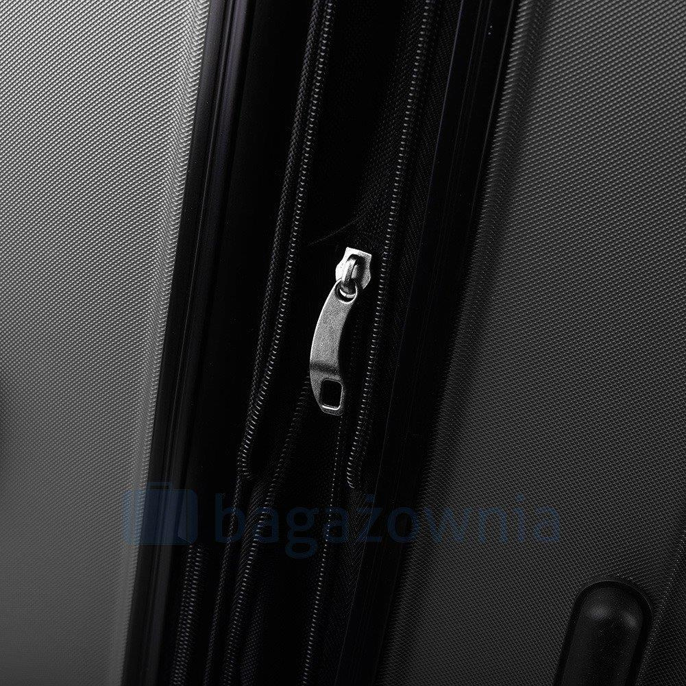 Nowoczesny, lekki model wykonany z bardzo wytrzymałego i odpornego na zarysowanie tworzywa ABS Plus, z dwupoziomową teleskopową rączką. Zewnętrzne, przyjemne w dotyku gumowe uchwyty oraz zamek szyfrowy uniemożliwiający dostanie się do wnętrza osobom niepożądanym. Trwały, duraluminiowy stelaż wbudowany w walizkę. Wyposażony w cztery obrotowe kauczukowe kółka, które zapewniają stabilność oraz lekkość prowadzenia w dowolnym kierunku. Wnętrze w ciemnym sygnowanym kolorze dzielone zamkiem błyskawicznym na dwie funkcjonalne komory.