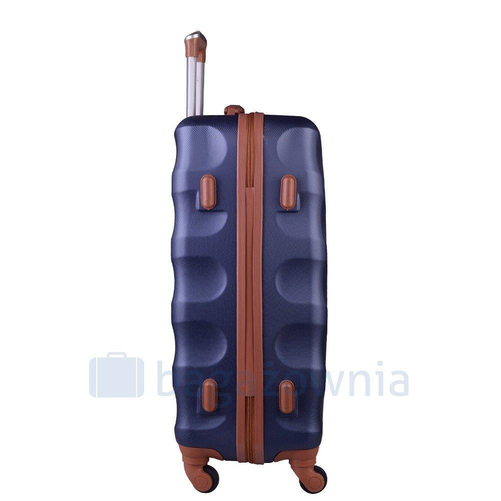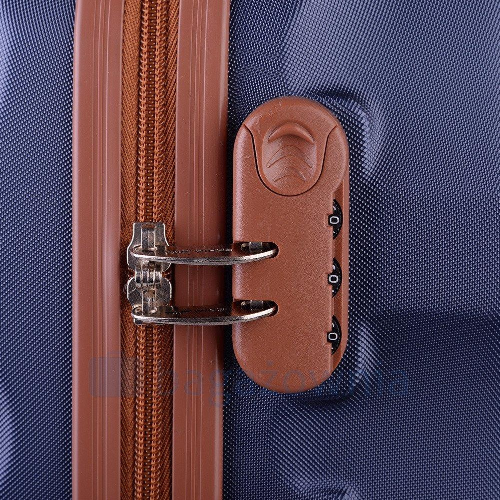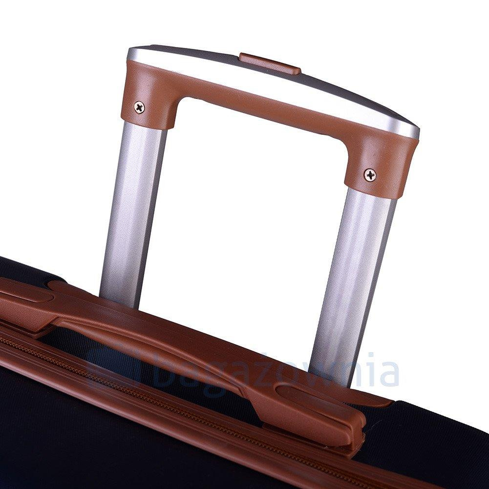 Nowoczesny, lekki model wykonany z bardzo wytrzymałego i odpornego na zarysowanie tworzywa ABS Plus, z dwupoziomową teleskopową rączką. Zewnętrzne, przyjemne w dotyku gumowe uchwyty oraz zamek szyfrowy uniemożliwiający dostanie się do wnętrza osobom niepożądanym. Trwały, duraluminiowy stelaż wbudowany w walizkę. Wyposażony w cztery obrotowe kauczukowe kółka, które zapewniają stabilność oraz lekkość prowadzenia w dowolnym kierunku. Wnętrze w ciemnym sygnowanym kolorze dzielone zamkiem błyskawicznym na dwie funkcjonalne komory.