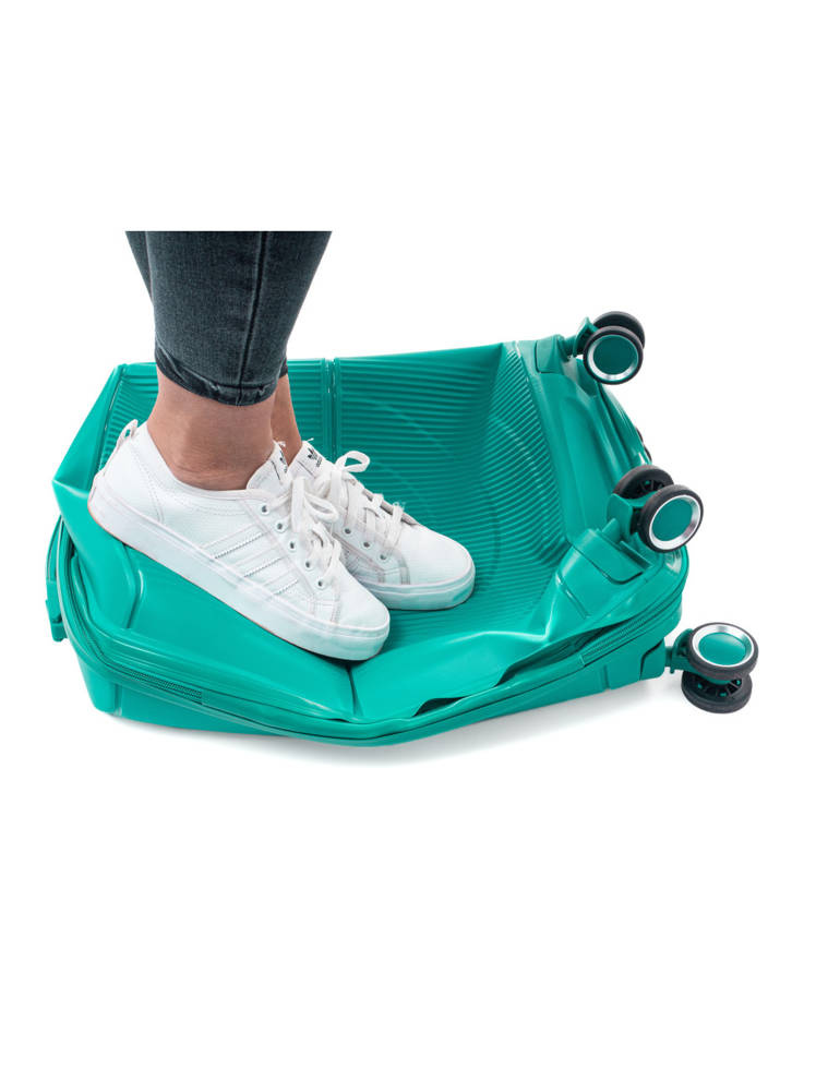 Jego skorupa wgniata się po czym wraca to prawidłowej postaci. Jedyny ślad jaki pozostaje, to jaśniejsze przebarwienie, które nie ujmuje atrakcyjności i ogólnego wizualnego efektu dla walizki.