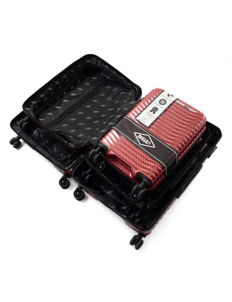 Walizki wyposażone są w cztery łożyskowane kółka, wysuwany uchwyt oraz dwie gumowe rączki ułatwiające przenoszenie bagażu.