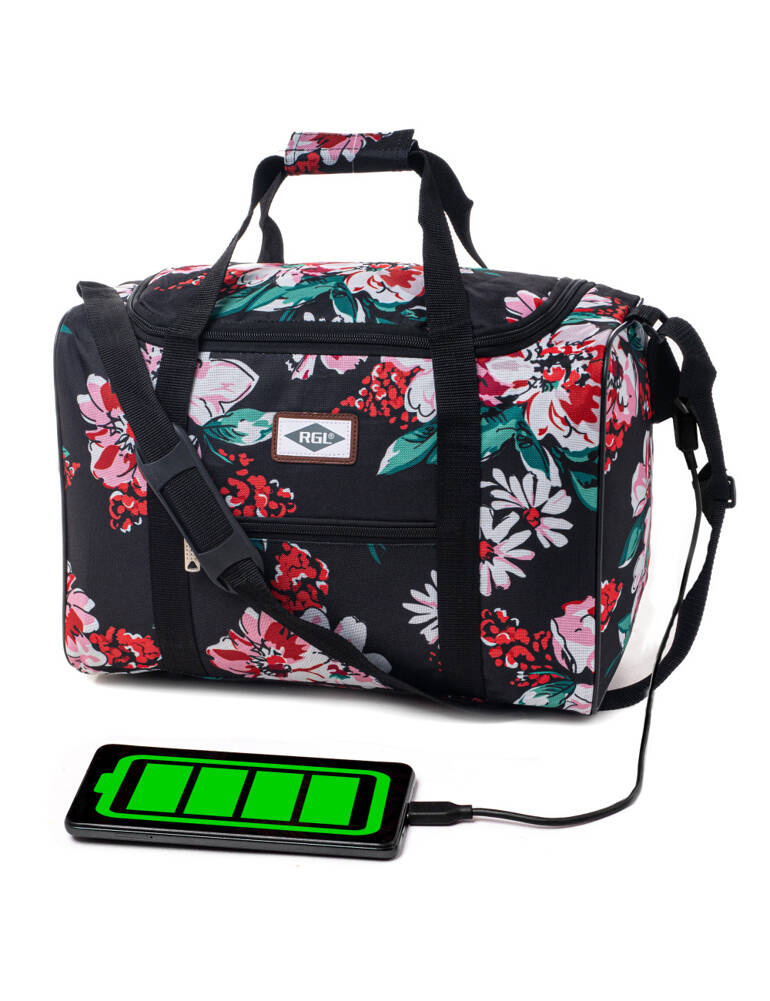 - Z tyłu pas do przytwierdzenia torby na rączki od walizki