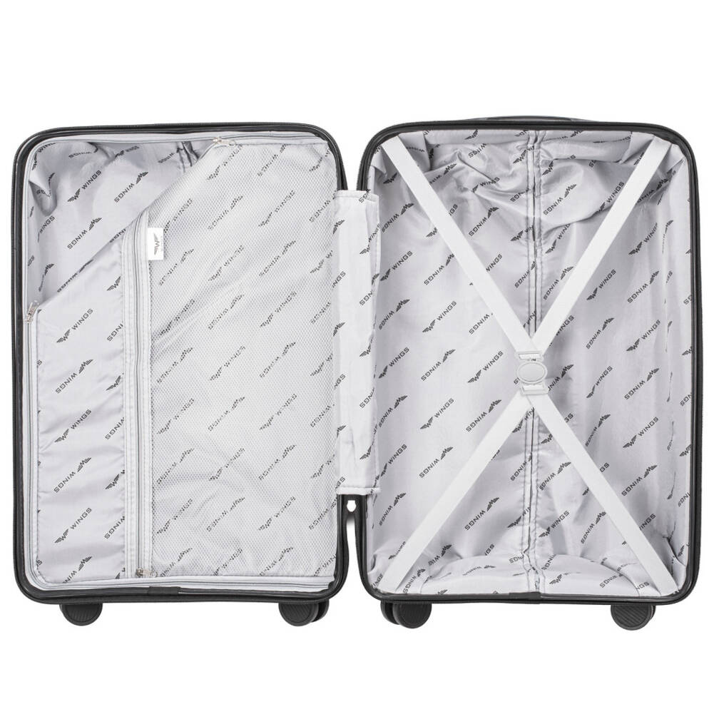 Walizka posiada trwały, duraluminiowy stelaż wbudowany w walizkę, który zapobiega jego uszkodzeniu, np. przy przeładunku.