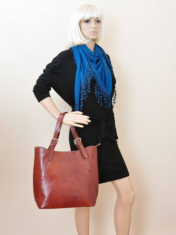 Klasyczna torebka zakupowa, wykonana z najwyższej jakości, włoskiej, naturalnej skóry bydlęcej.