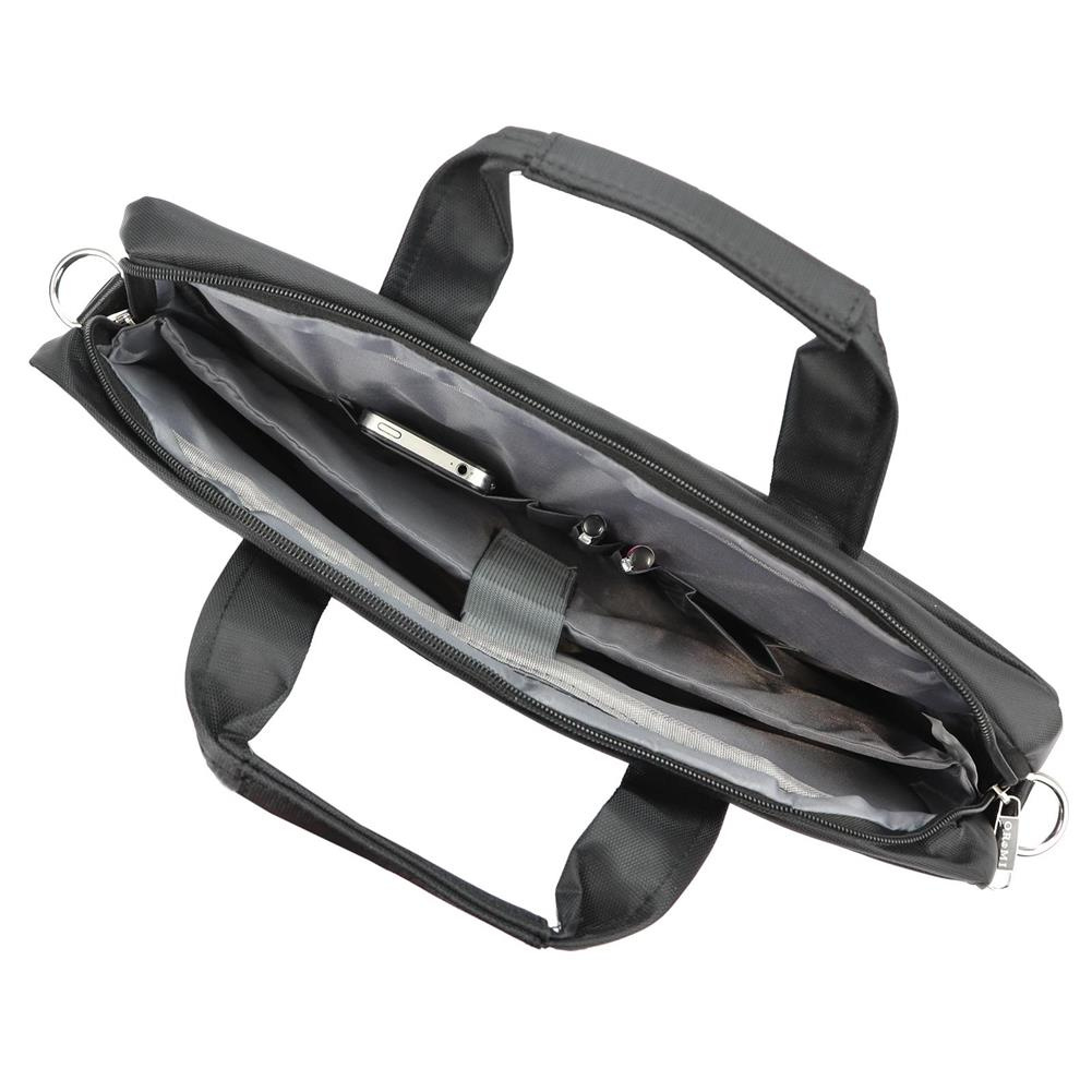 Klasyczna, teczka - laptopówka, wykonana z materiału poliestrowego.