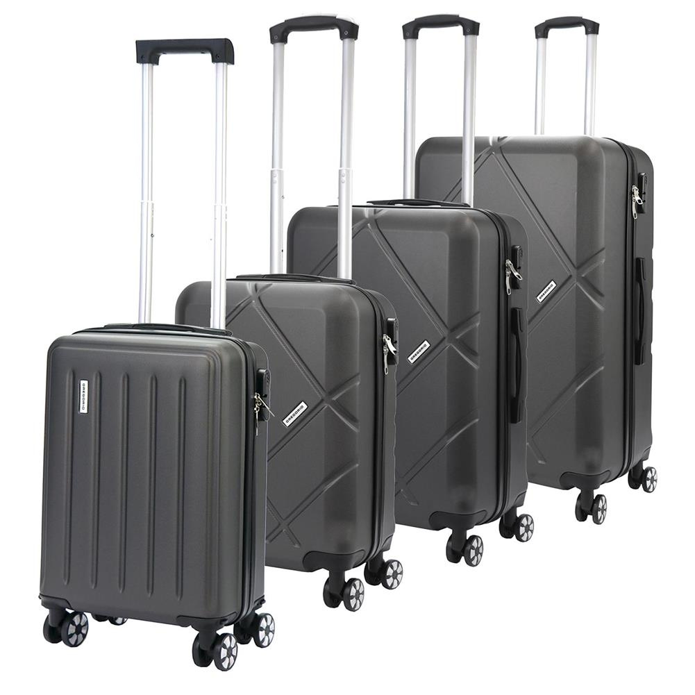 Zestaw składa się z czterech walizek w rozmiarach 18, 20, 24 i 28 cali.