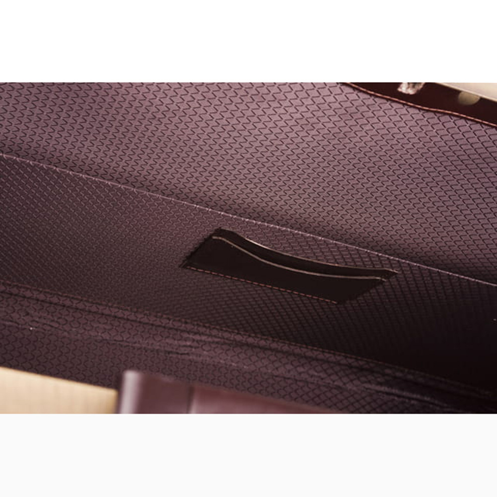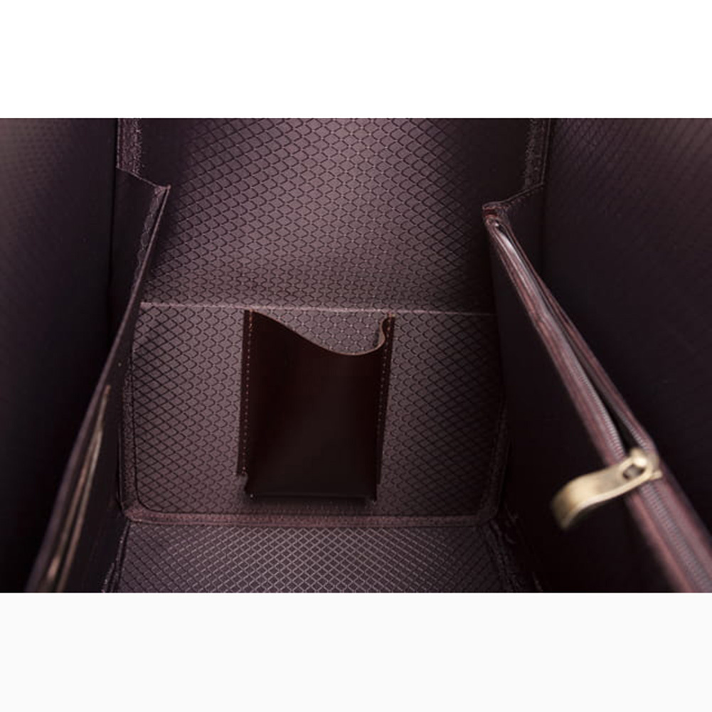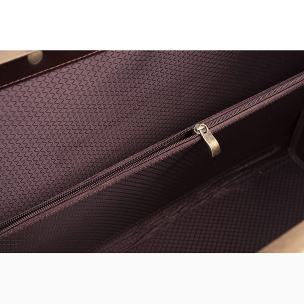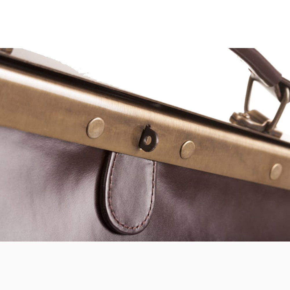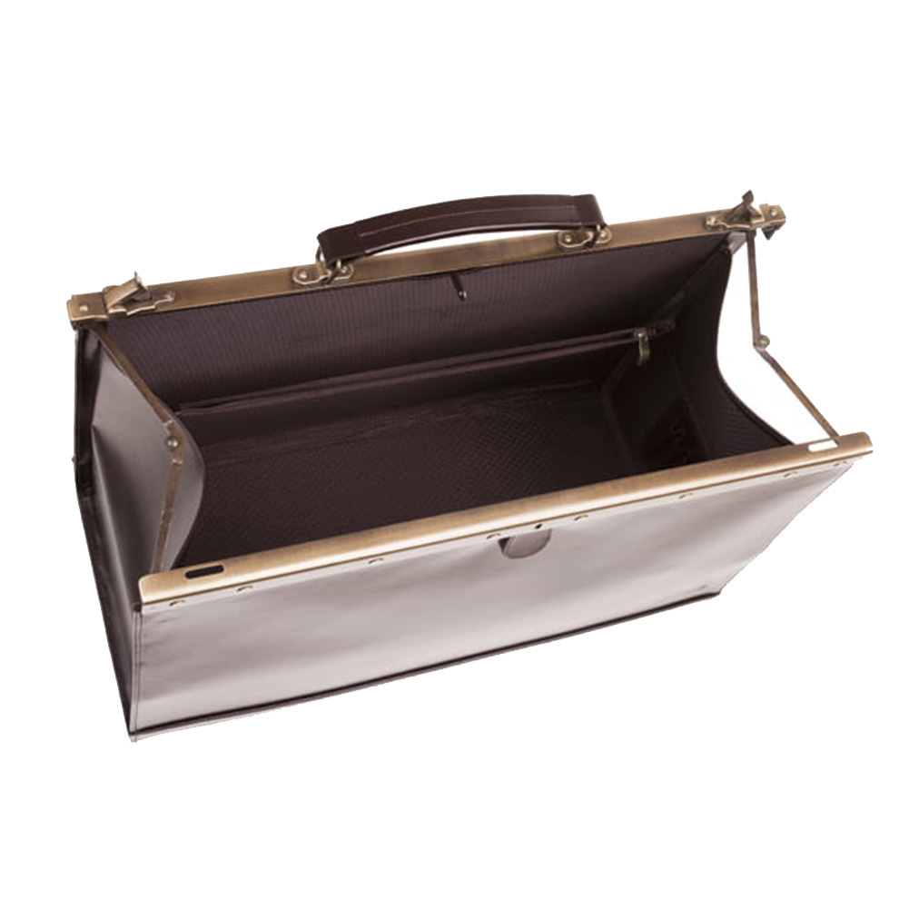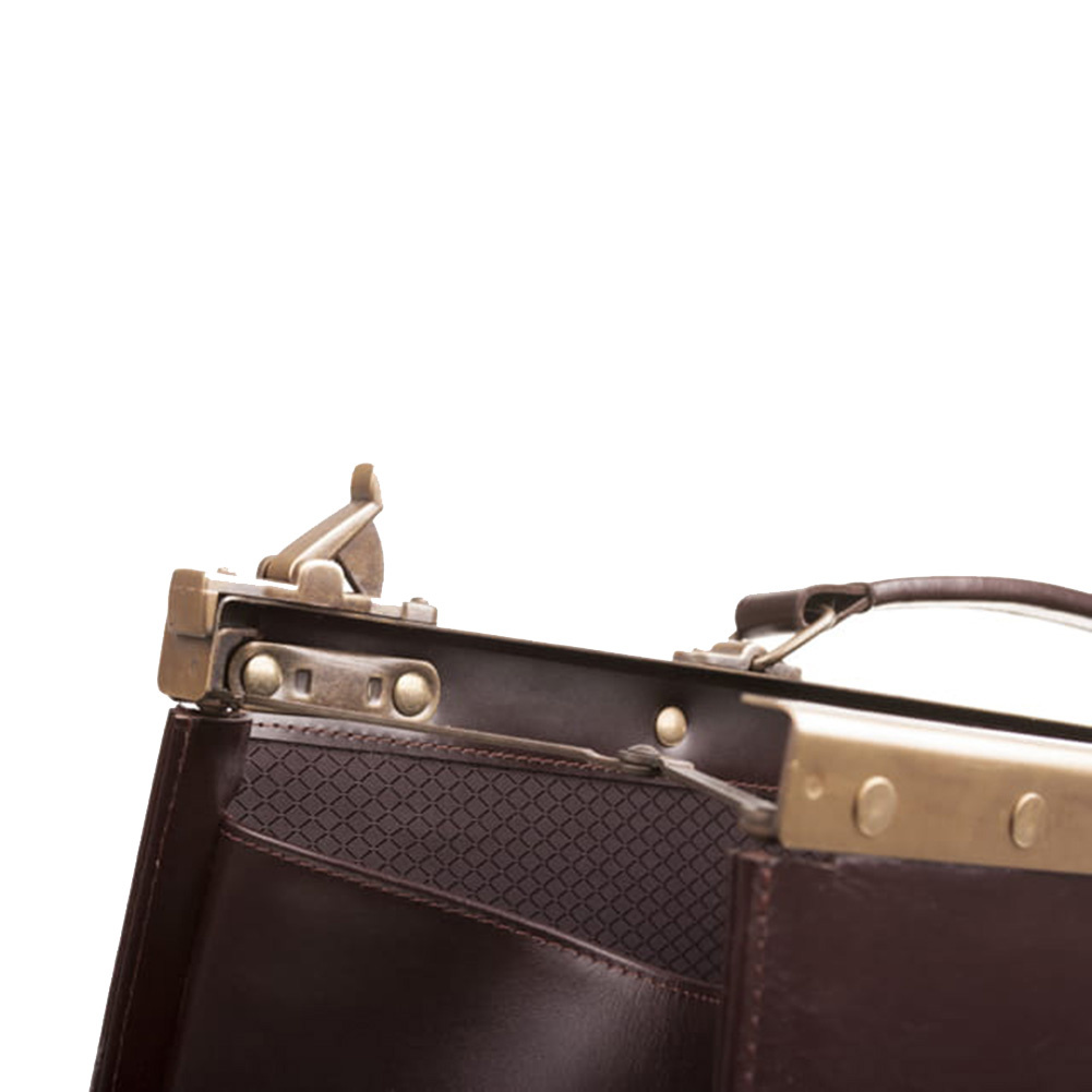 Torba skórzana kufer typ lekarski VOOC Prestige PK3 40 MODEL: PK3 VOOC PK3 to unikalna torba skórzana typu kufer lekarski. Wykonana z delikatnie połyskującej naturalnej skóry galanteryjnej. Solidne mosiężne zamknięcie biglowe nie tylko chroni przed przypadkowym otwarciem torby, ale również ułatwia dostęp do jej przestronnego wnętrza i dodaje niepowtarzalnego, eleganckiego wyrazu. Made in Poland Na zewnątrz: Wykonana z najwyższej jakości naturalnej skóry galanteryjnej, Solidne mosiężne okucia i zamki, Uchwyt do noszenia kufra w ręku wykonany z grubych warstw skóry, Pukle zapobiegające uszkodzeniom i otarciom spodu torby. Wewnątrz: Pojedyncza komora wykończona wzmocnioną podszewką (36 x 18 cm, mierzone na spodzie), Dwie otwarte kieszenie (36 x 12,5 cm), Otwarta skórzana kieszonka np. na telefon (6 x 10 cm), Trzy skórzane uchwyty na długopisy, Naszyta skórzana kieszeń na wizytówki (8,5 x 5,5 cm), Kieszeń na zamek błyskawiczny (30 x 12 cm). Wymiary: 40 x 28 x 19 cm (szer., wys., gł.) Waga: 1,4 kg