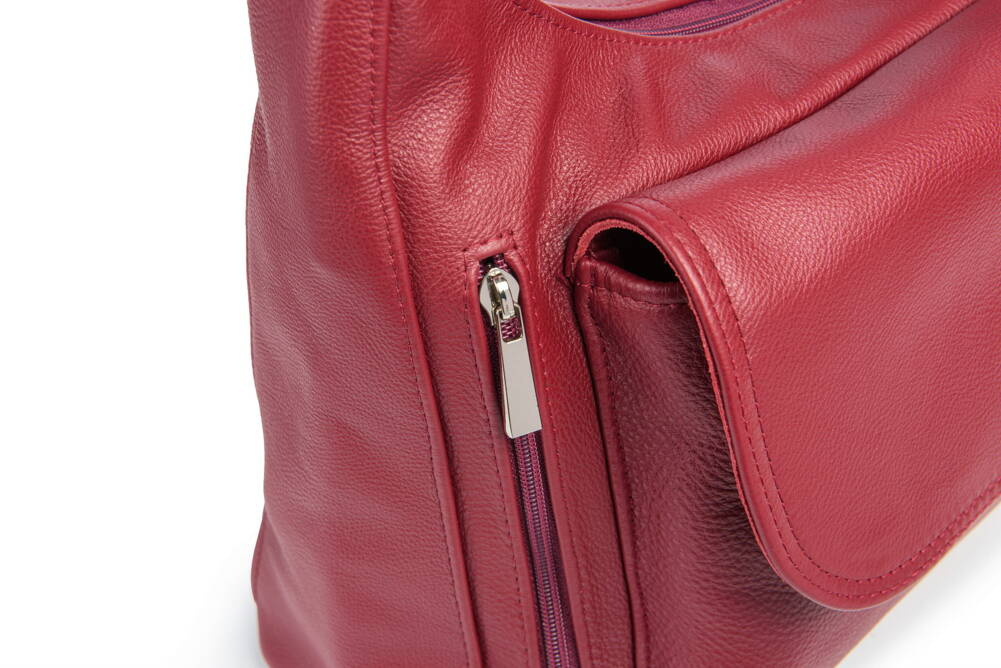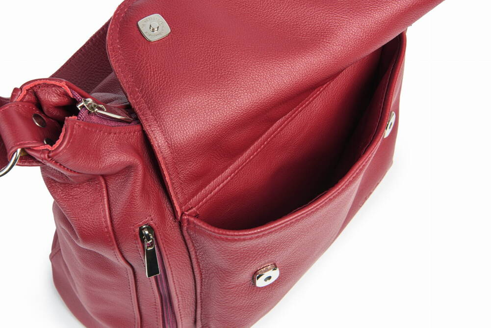 Posiada dwie przestronne komory przedzielone kieszenią zapinaną na zamek.