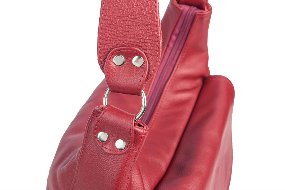 Jest uszyta z modnej, groszkowanej skóry naturalnej pochodzącej z Włoch.