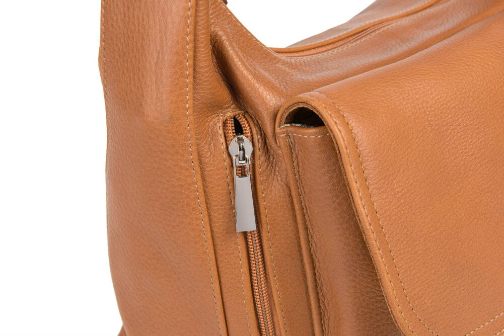 Posiada dwie przestronne komory przedzielone kieszenią zapinaną na zamek.