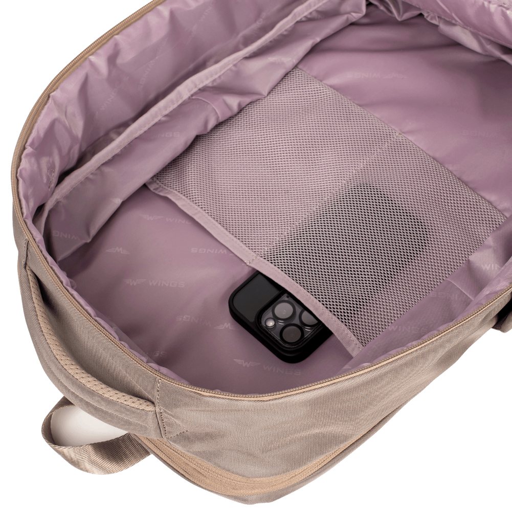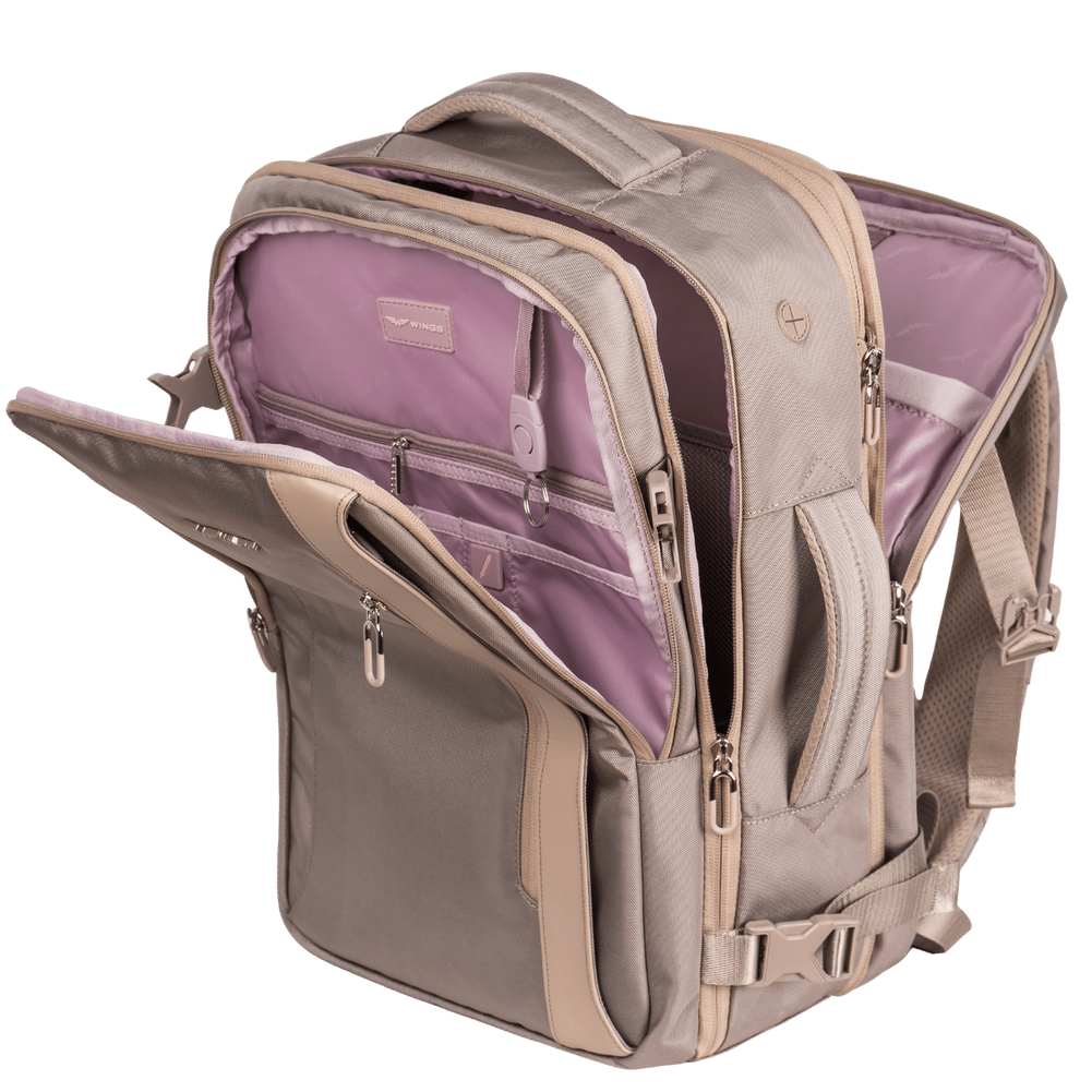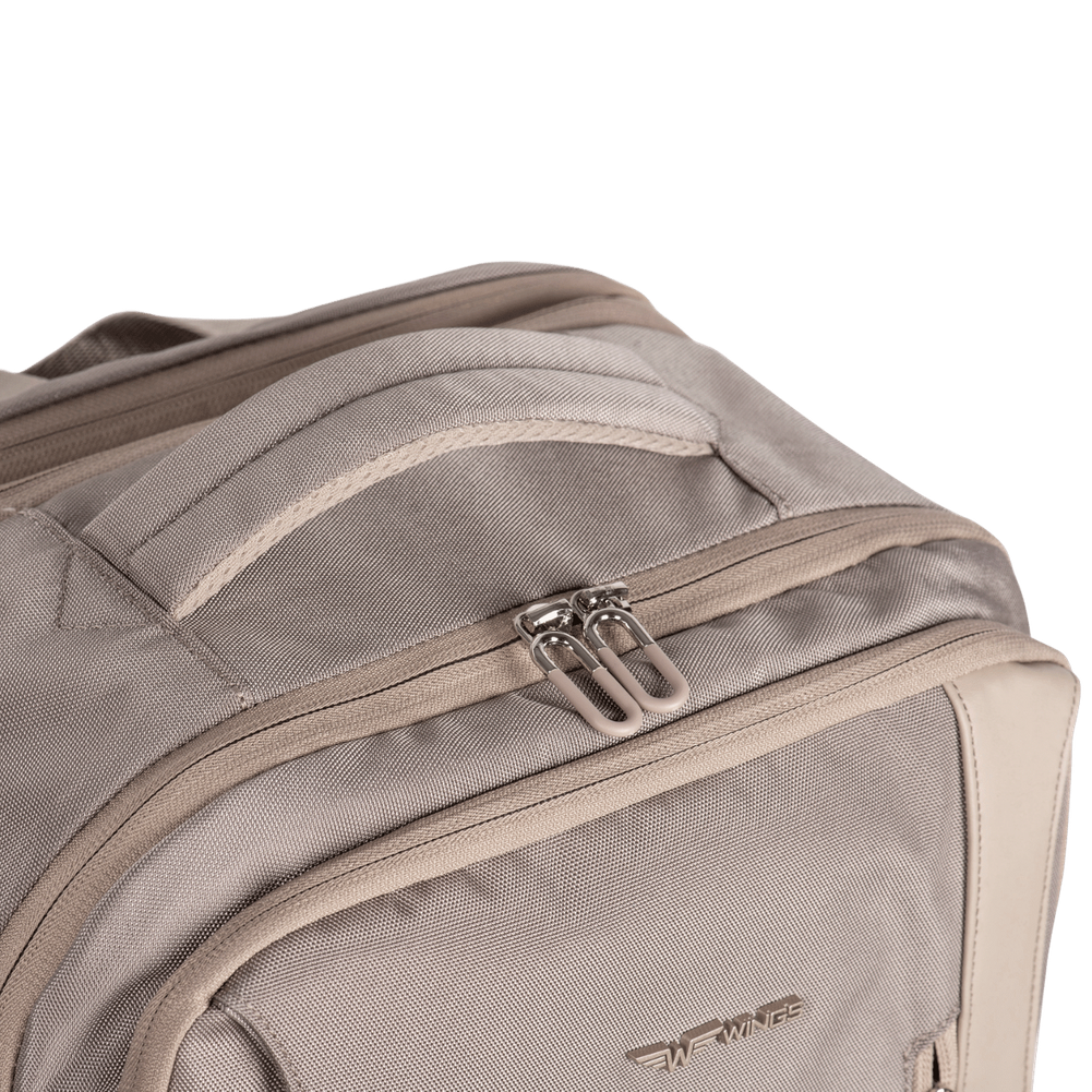 Wings, stylowy plecak Skylark SK001, zaprojektowany dla codziennej wygody, łączy funkcje torby, bagażu podręcznego i plecaka w jednym. Oferuje do 30,5 litra pojemności, dodatkowe poszerzenie, wodoodporną kieszeń na laptopa 15,6" i wiele przegródek, w tym amortyzowaną na elektronikę i specjalną na strój sportowy oraz kosmetyki. Wymiary pasują do darmowego bagażu podręcznego w popularnych liniach lotniczych, jak Ryanair, Wizz Air, LOT i Lufthansa. Wyposażony we wzmocniony uchwyt, tylną taśmę na walizkę, regulowane szelki, hydrofobowy tył dla lepszego odprowadzania wilgoci, oraz zintegrowane wejście USB. Dostępny w trzech kolorach, idealny dla każdego, z możliwością noszenia na plecach, w dłoni lub na walizce, zapewnia maksymalną wygodę dzięki przemyślanej konstrukcji i funkcjonalności.