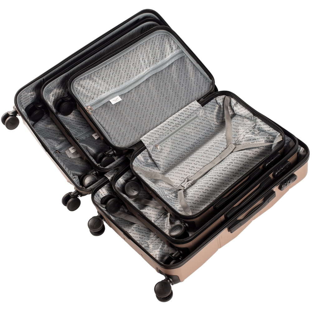 Niezależnie od celu podróży, walizki PEACOCK będą idealnym dopełnieniem stylu. W zestawie znajdują się trzy różnej wielkości walizki, które można przechowywać jedna w drugiej, minimalizując miejsce zajmowane w domu.