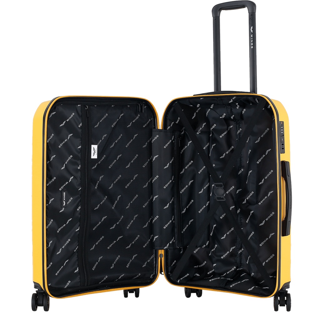 WINGS HPE01 łączy nowoczesny design z funkcjonalnością. Wykonane z trwałego polipropylenu, są odporne na uszkodzenia i pęknięcia. Charakteryzują się spójnym kolorem korpusu i zamków, z kontrastującymi czarnymi elementami takimi jak rączki i wysokiej jakości kółka obracane o 360 stopni. Wnętrze podzielone na dwie części z dodatkową kieszenią zapewnia organizację bagażu. Wewnętrzne pasy zapewniają bezpieczeństwo rzeczy podczas podróży. Walizki wyposażone są w zamek TSA, co gwarantuje bezpieczeństwo podróży i spełnia wymagania lotnisk. Idealny wybór dla podróżników ceniących styl i trwałość.