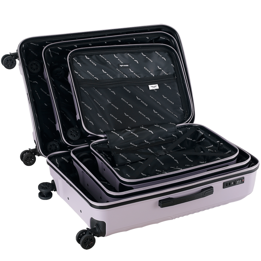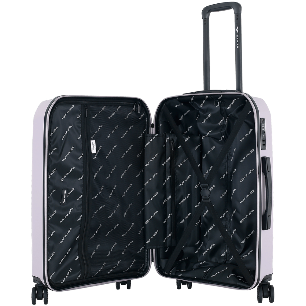 WINGS HPE01 łączy nowoczesny design z funkcjonalnością. Wykonane z trwałego polipropylenu, są odporne na uszkodzenia i pęknięcia. Charakteryzują się spójnym kolorem korpusu i zamków, z kontrastującymi czarnymi elementami takimi jak rączki i wysokiej jakości kółka obracane o 360 stopni. Wnętrze podzielone na dwie części z dodatkową kieszenią zapewnia organizację bagażu. Wewnętrzne pasy zapewniają bezpieczeństwo rzeczy podczas podróży. Walizki wyposażone są w zamek TSA, co gwarantuje bezpieczeństwo podróży i spełnia wymagania lotnisk. Idealny wybór dla podróżników ceniących styl i trwałość.