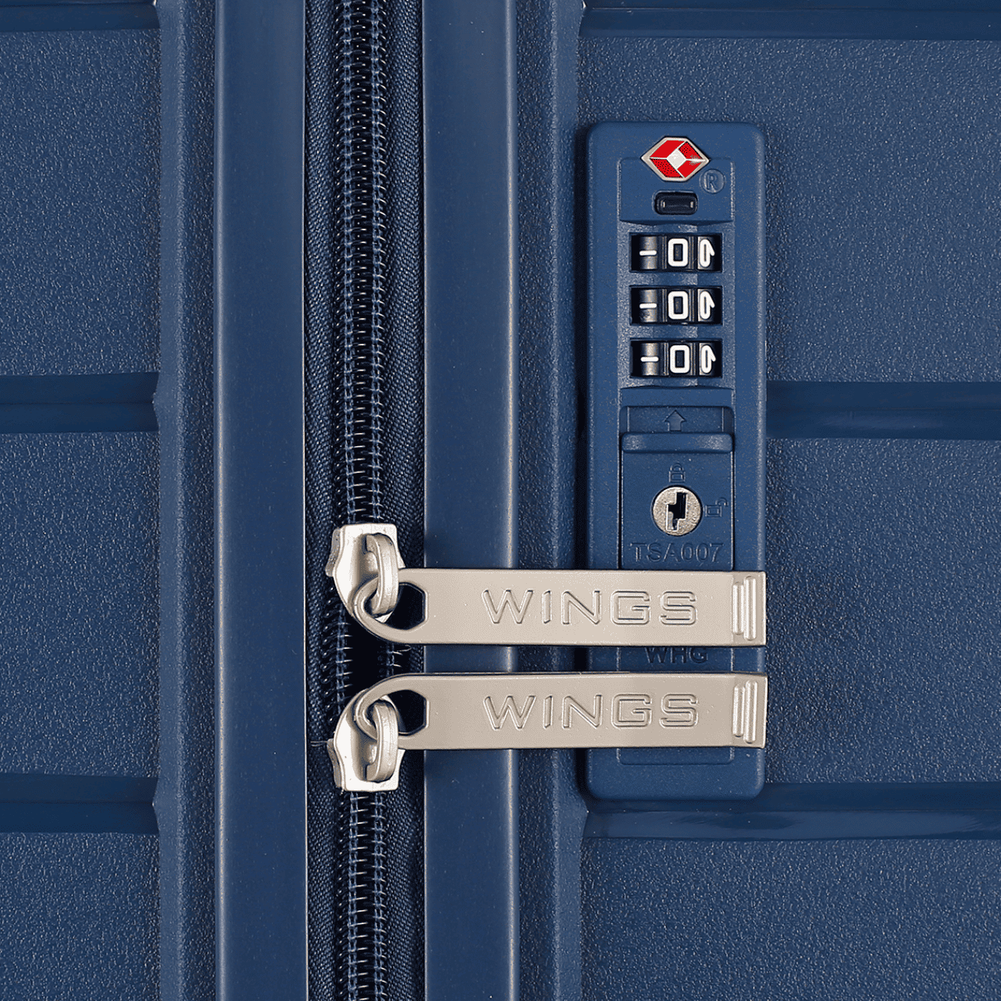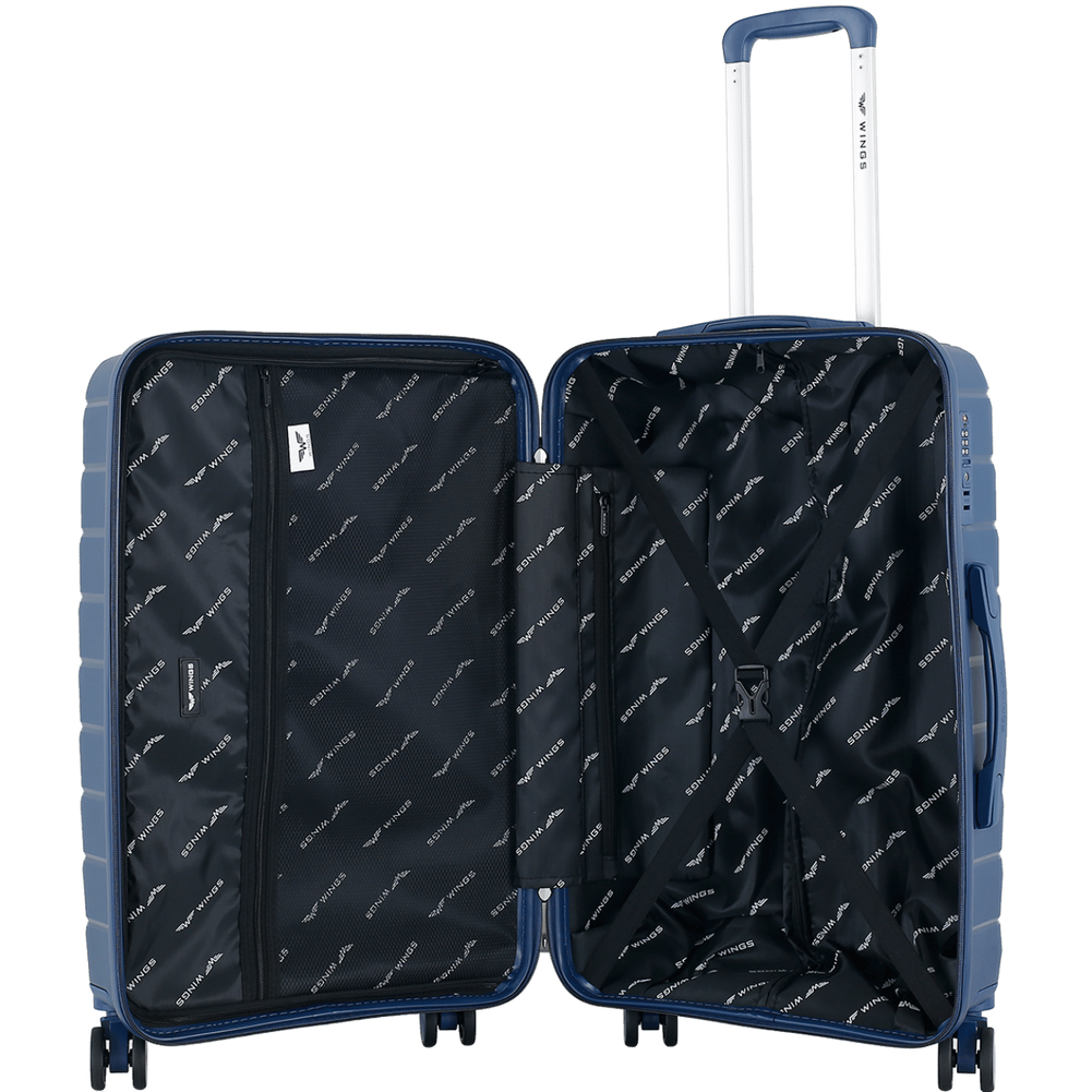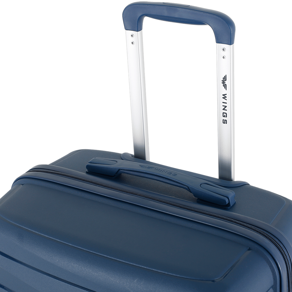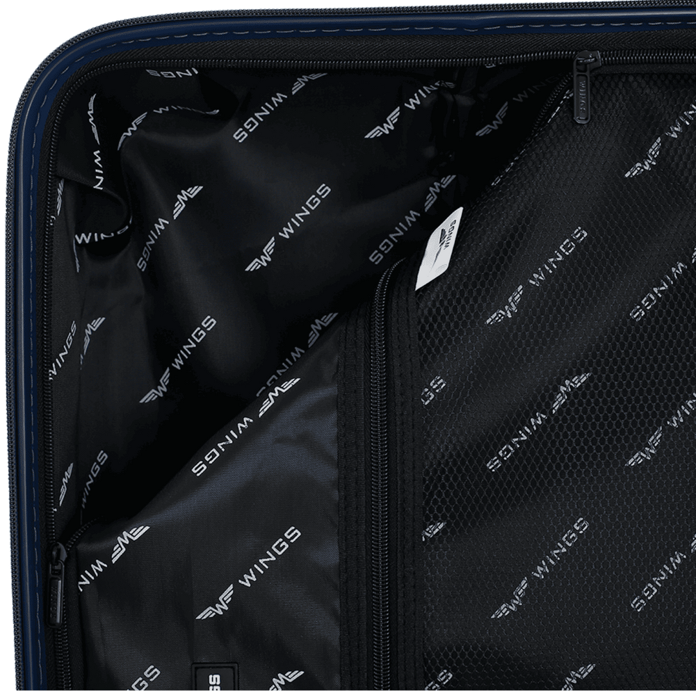 WINGS MUR01 wykonany z wytrzymałego polipropylenu łączy styl, funkcjonalność i niezawodność. W skład zestawu wchodzą trzy rozmiary walizek: 28", 24" oraz kabinowa 20". Walizka średnia i duża zostały wyposażone w funkcjonalne stopki w formie wieszaków. Model posiada klasyczne jednolite i eleganckie kolory, podwójne niezawodne kółka obrotowe 360 stopni dla łatwego manewrowania, regulowaną rączkę teleskopową i zamek TSA dla bezpieczeństwa. Wnętrze wyposażone jest w dwie komory: jedną z pasami zabezpieczającymi, drugą zamykaną na suwak z siatkowaną kieszenią oraz dodatkową kieszenią na drobne przedmioty. Czarna podszewka wewnątrz sygnowana logiem Wings.