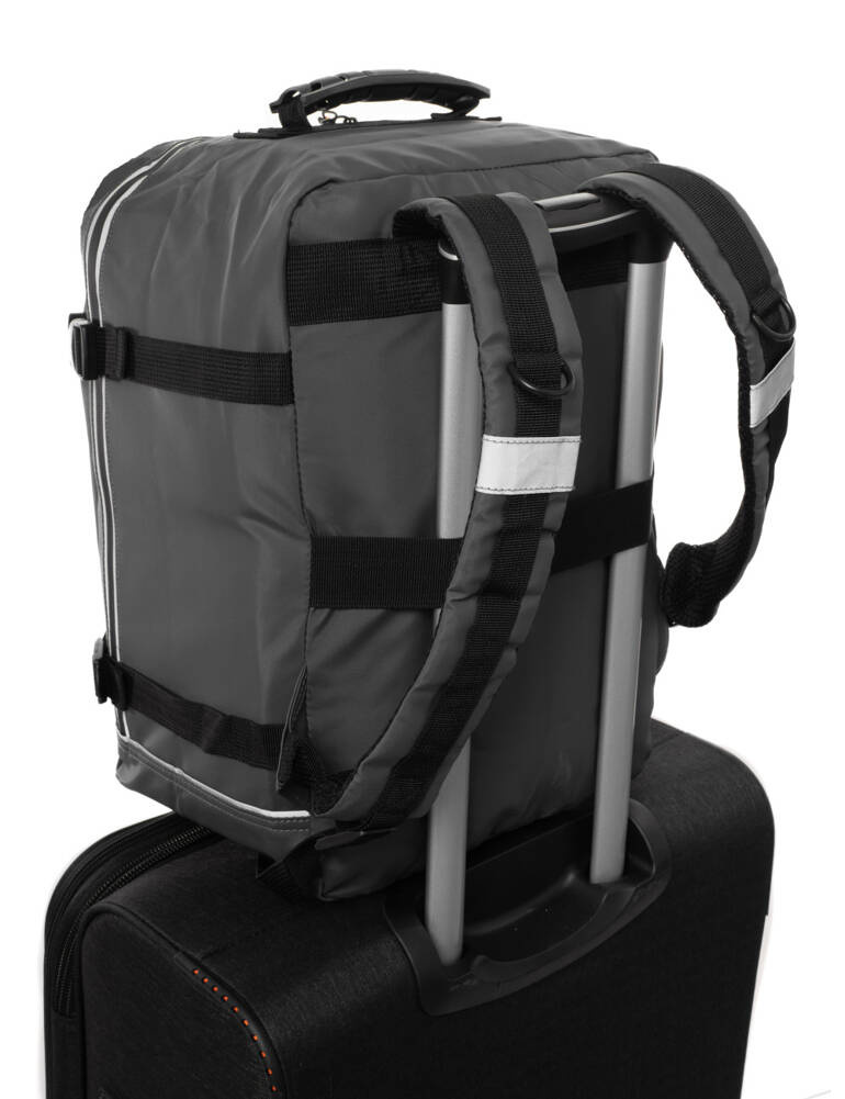 Plecak podróżny PL03 jest wszechstronną opcją, może być używany w podróży, pracy lub do nauki. Jest to bardzo funkcjonalny wariant bagażu podręcznego, którego zdecydowaną zaletą są nowatorskie rozwiązania. Model ten może służyć jako plecak turystyczny (dzięki zamocowanym na tyle szelkom na ramiona), jako torba podróżna dzięki uchwytowi górnemu i bocznemu.