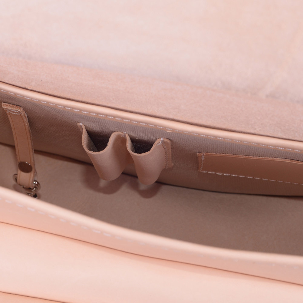 - wewnątrz głównej komory, przegrody na telefon, karty, klamra do kluczy i kieszenią ogólną