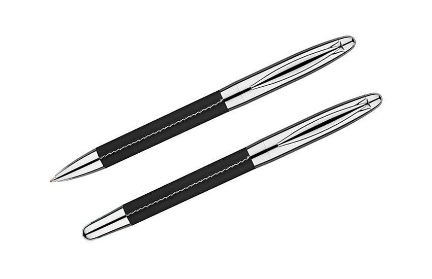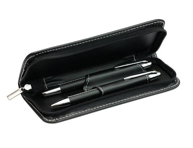 - Komplet piśmienniczy: długopis i pióro kulkowe w etui z ekoskóry PU.