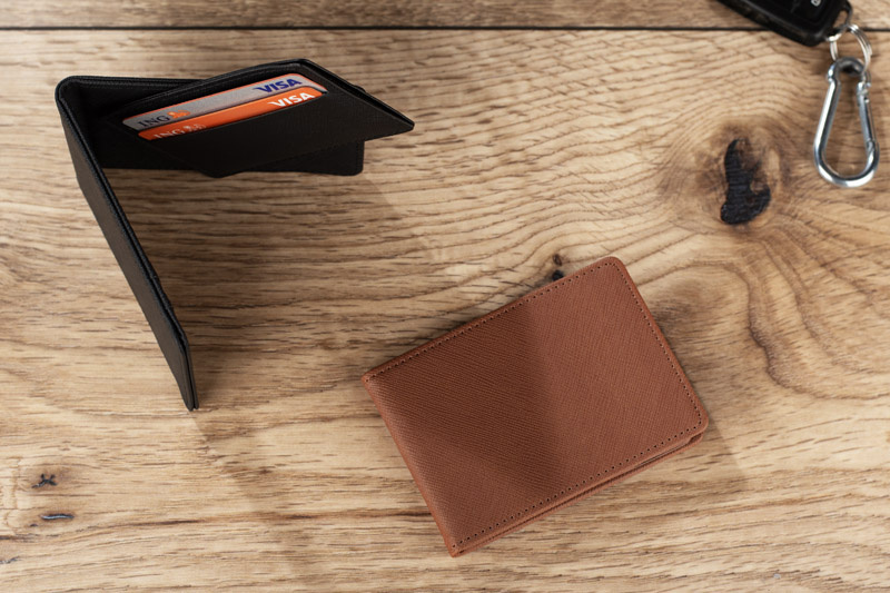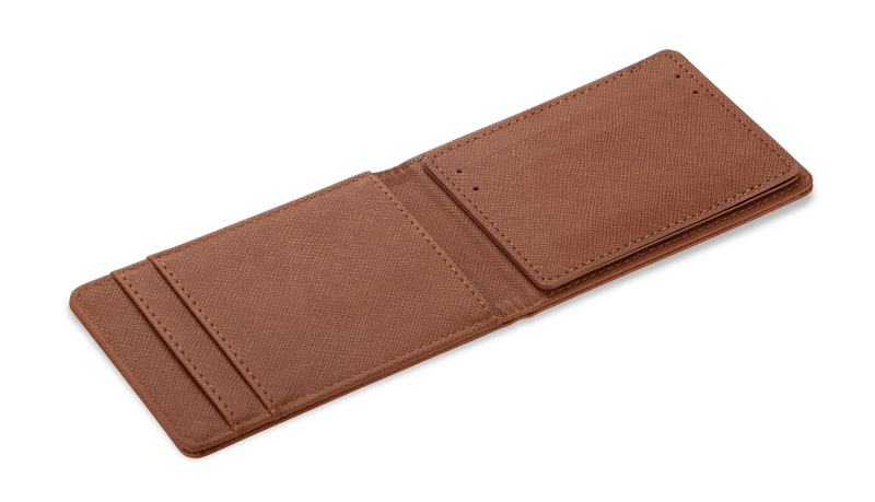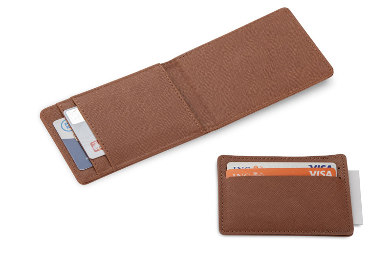 Składa się z dwóch elementów: głównej części z miejscem na karty oraz dodatkowego etui, które również oferuje przestrzeń na karty lub dokumenty.