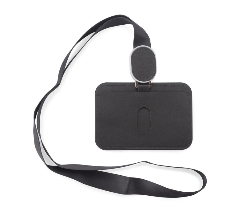 Identyfikator zawieszony na szerokiej, przyjemnej w dotyku taśmie o długości 86cm.