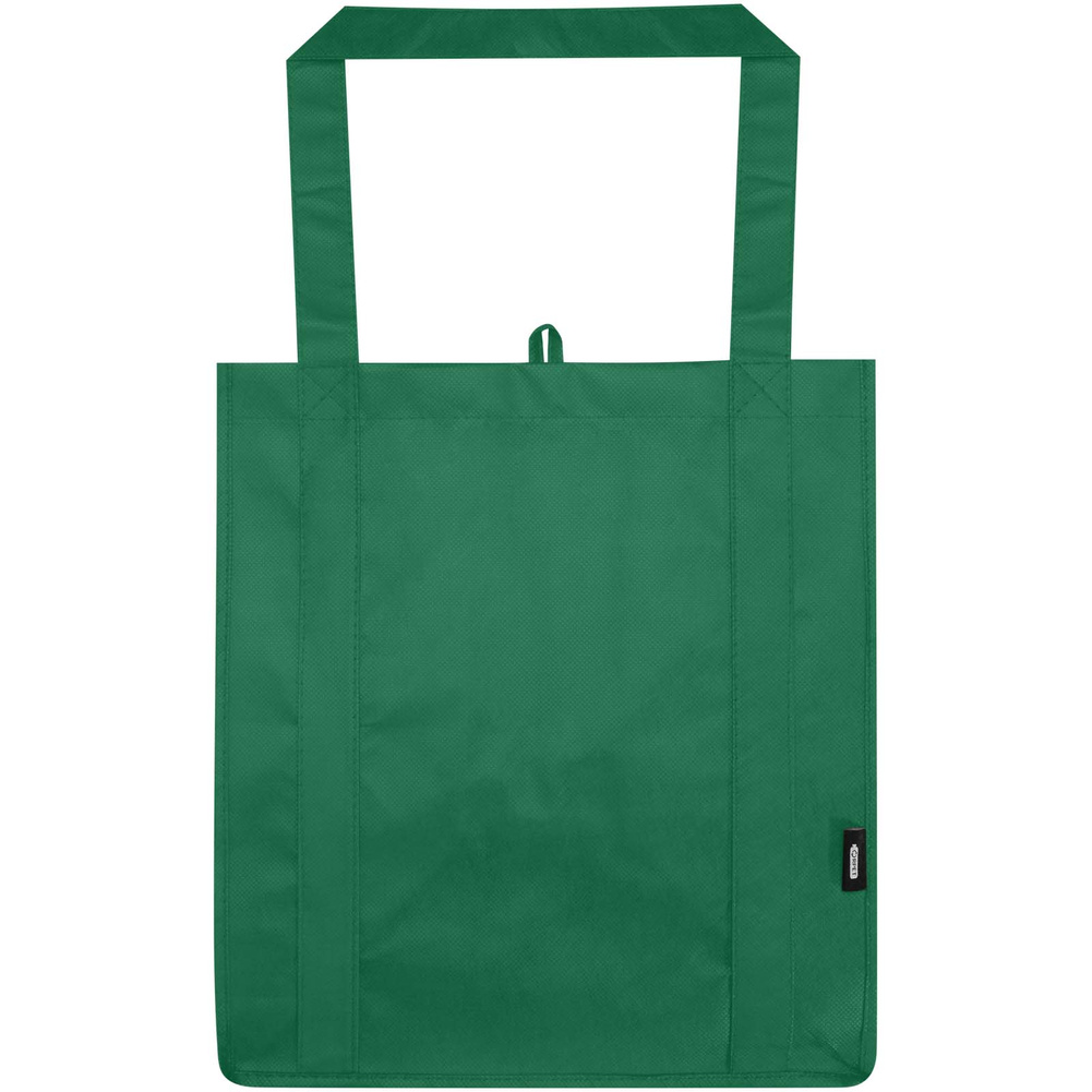 Wykonana z trwałej i odpornej na rozdarcia włókniny RPET z recyklingu z certyfikatem GRS torba na zakupy Liberty ma sztywne dno, dzięki czemu jest uniwersalna i solidna. Torba posiada dużą komorę główną i uchwyty o długości 25 cm. Pojemność: 29 litrów. Wytrzymałość do 12 kg.