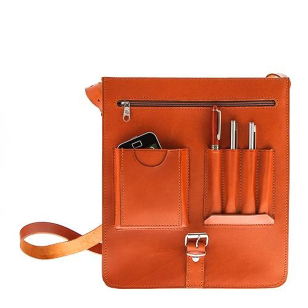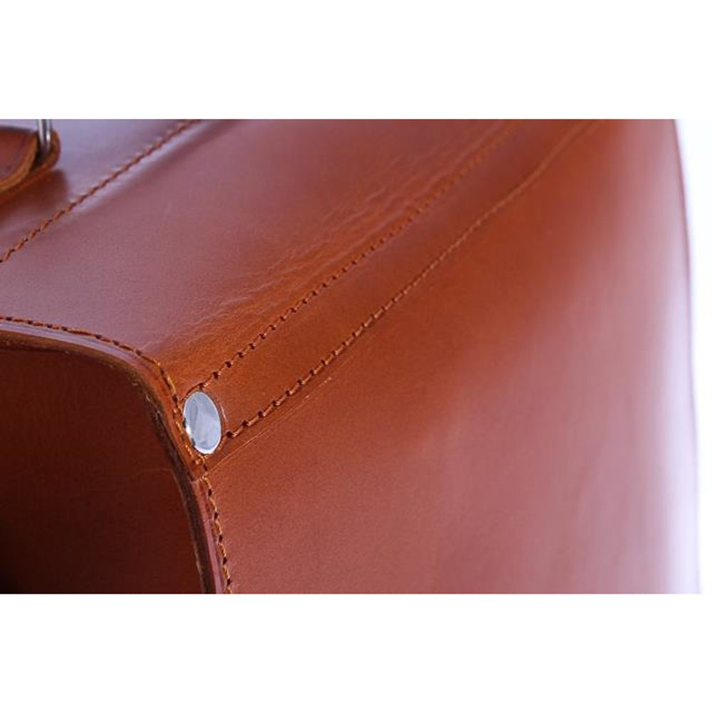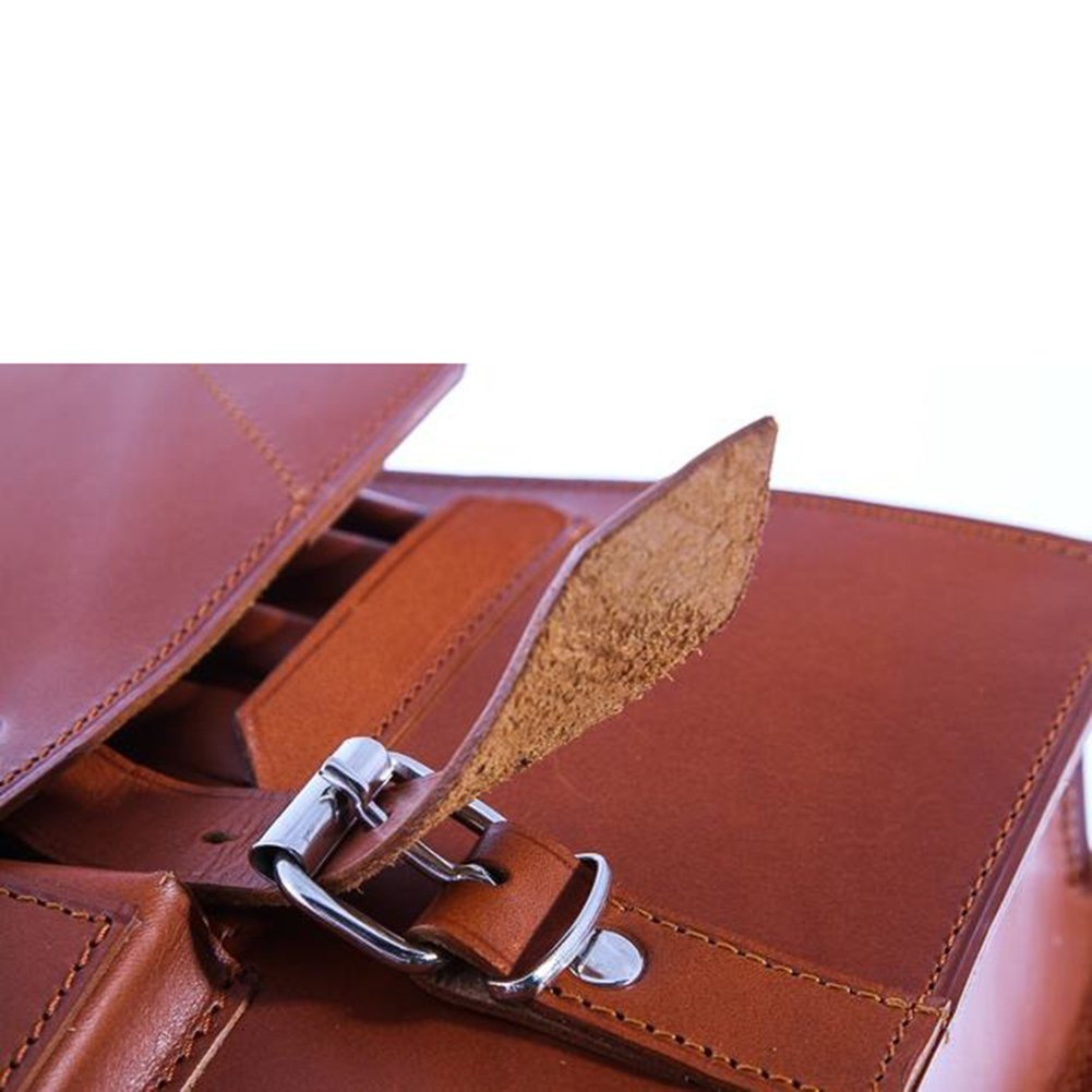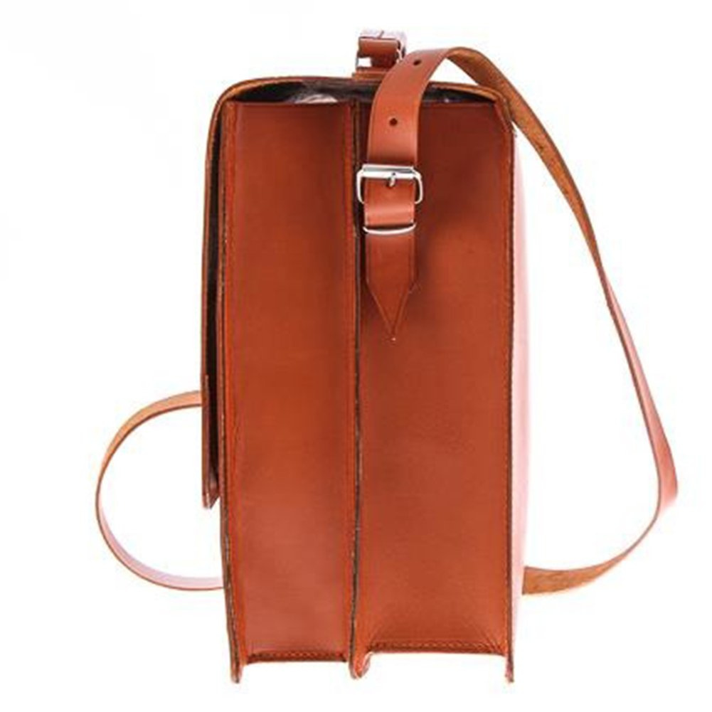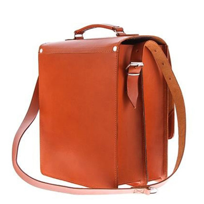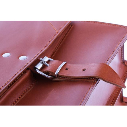 Duża dwukomorowa skórzana raportówka w stylu vintage mieszcząca format A4. Torba dedykowana dla biznesmenów i studentów. Klapa zamykana na tradycyjną klamrę. Pod klapą ukryte mini biuro kieszeń zapinana na zamek, kieszonka na smartfon, miejsce na wizytówki, cztery miejsca na długopisy. Dwie komory z łatwością pomieszczą gabarytowe przedmioty typu: laptop, segregator, teczkę z dokumentami, skoroszyt, itp. Pas nośny z regulowaną długością można odpiąć i dzięki uchwytowi możemy nosić torbę w ręku.