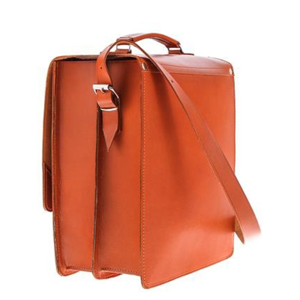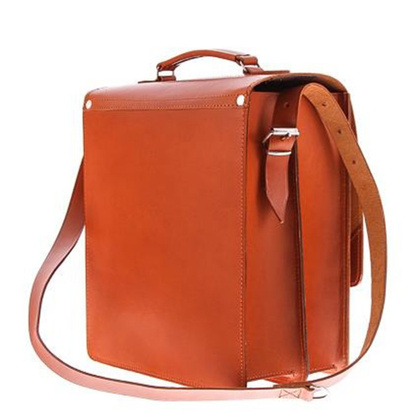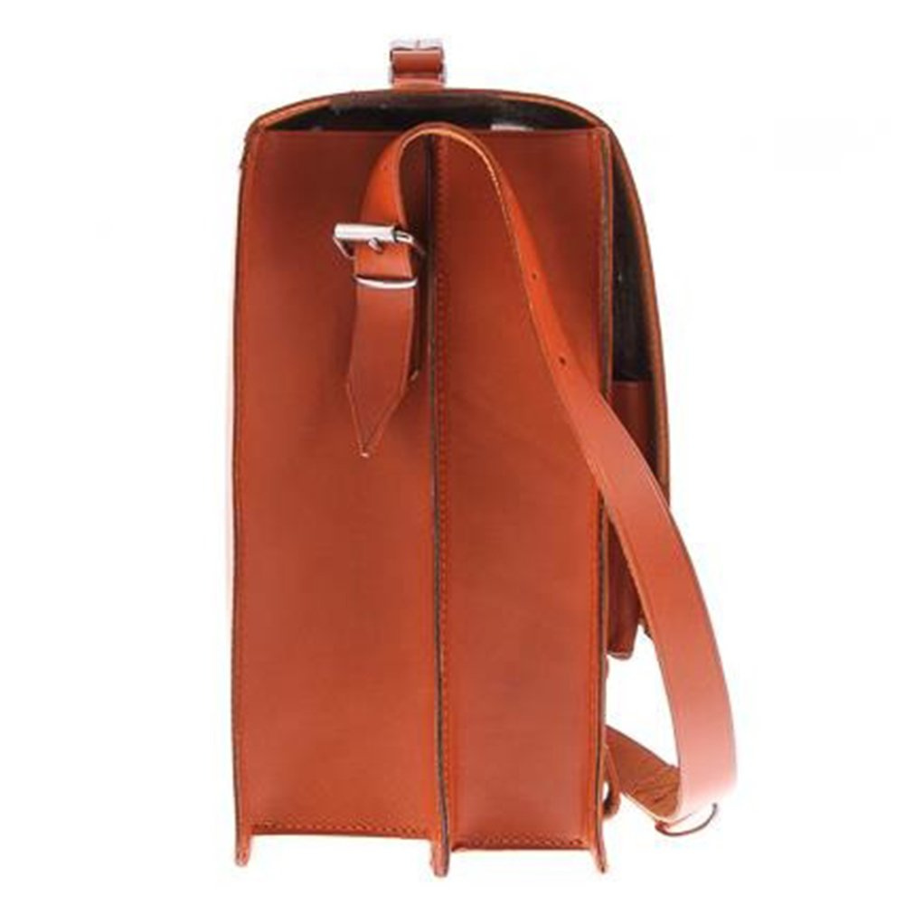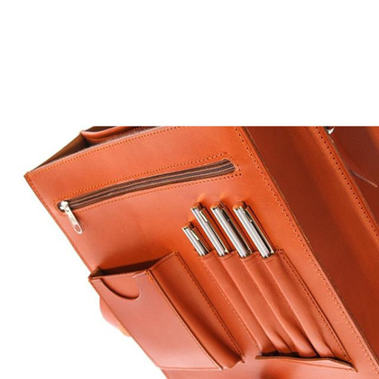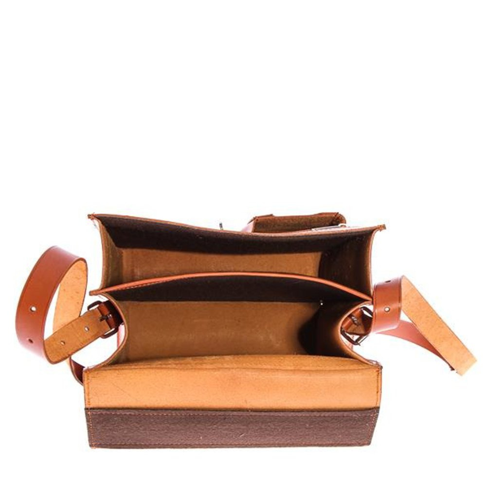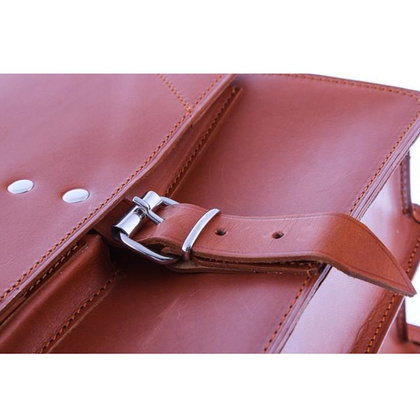 Duża dwukomorowa skórzana raportówka w stylu vintage mieszcząca format A4. Torba dedykowana dla biznesmenów i studentów. Klapa zamykana na tradycyjną klamrę. Pod klapą ukryte mini biuro kieszeń zapinana na zamek, kieszonka na smartfon, miejsce na wizytówki, cztery miejsca na długopisy. Dwie komory z łatwością pomieszczą gabarytowe przedmioty typu: laptop, segregator, teczkę z dokumentami, skoroszyt, itp. Pas nośny z regulowaną długością można odpiąć i dzięki uchwytowi możemy nosić torbę w ręku.