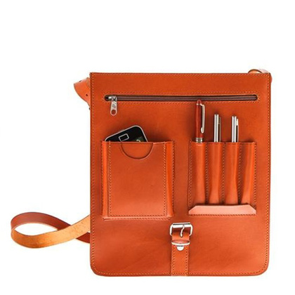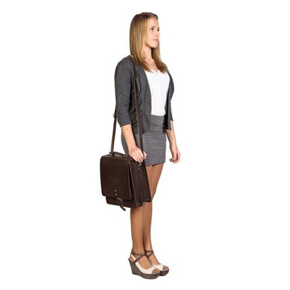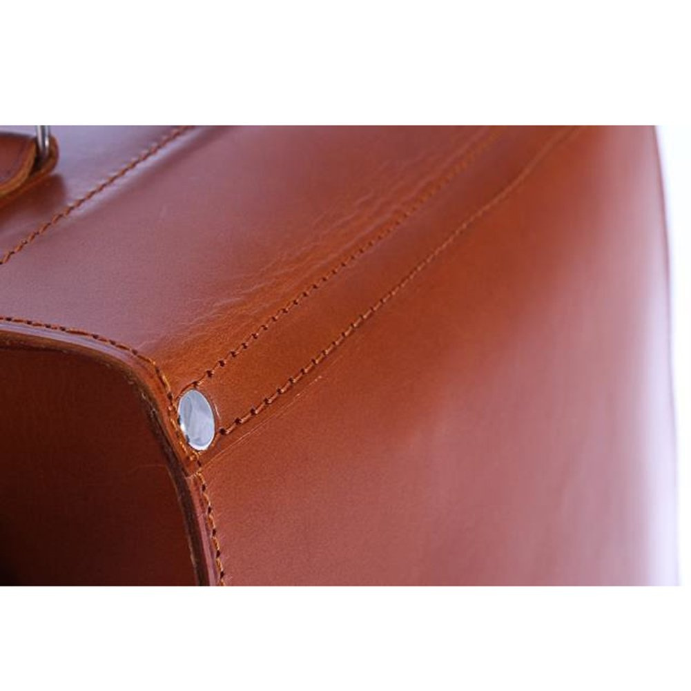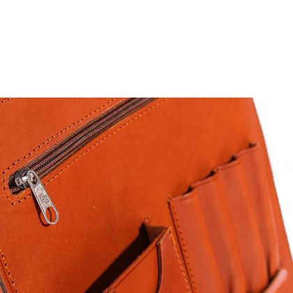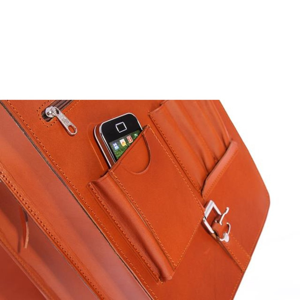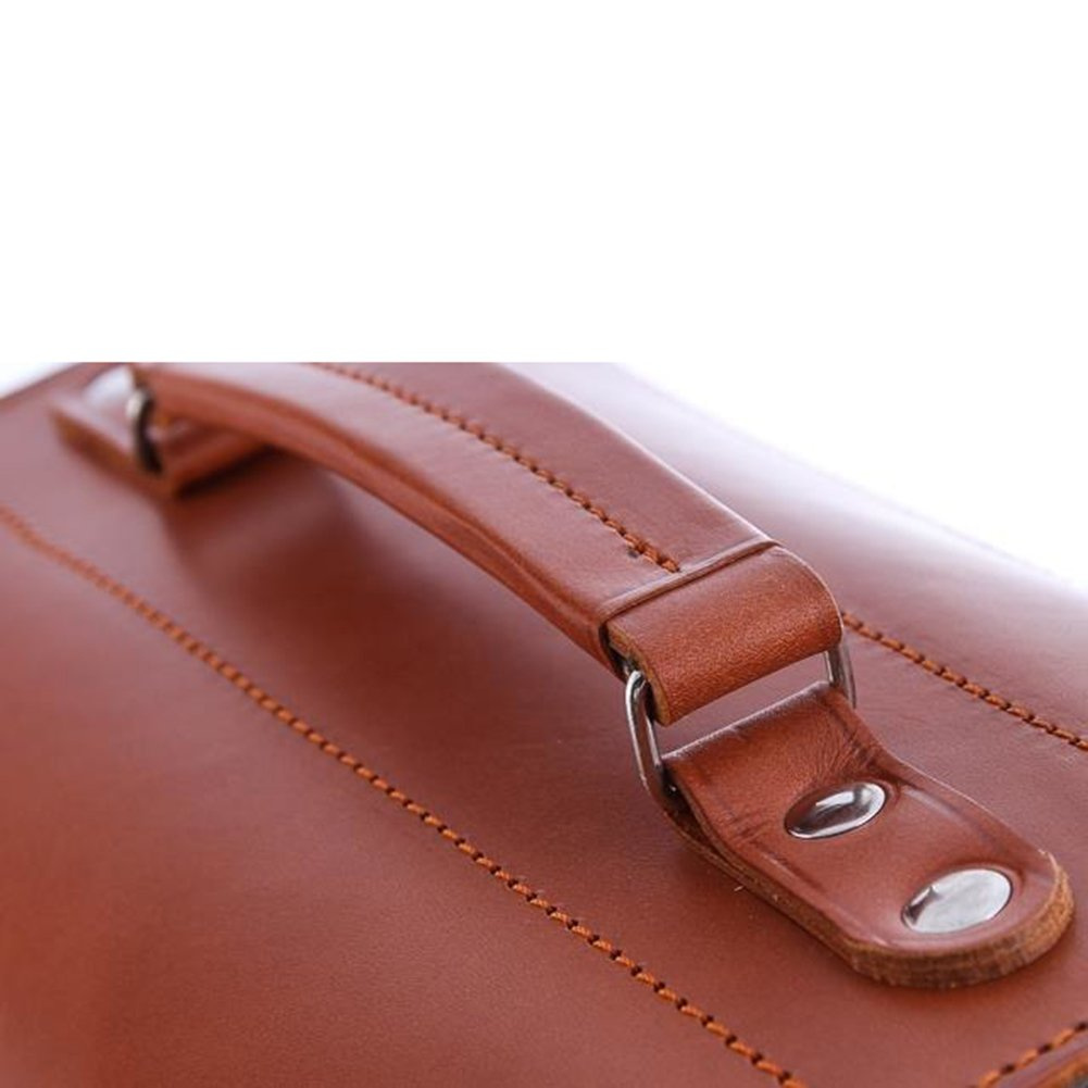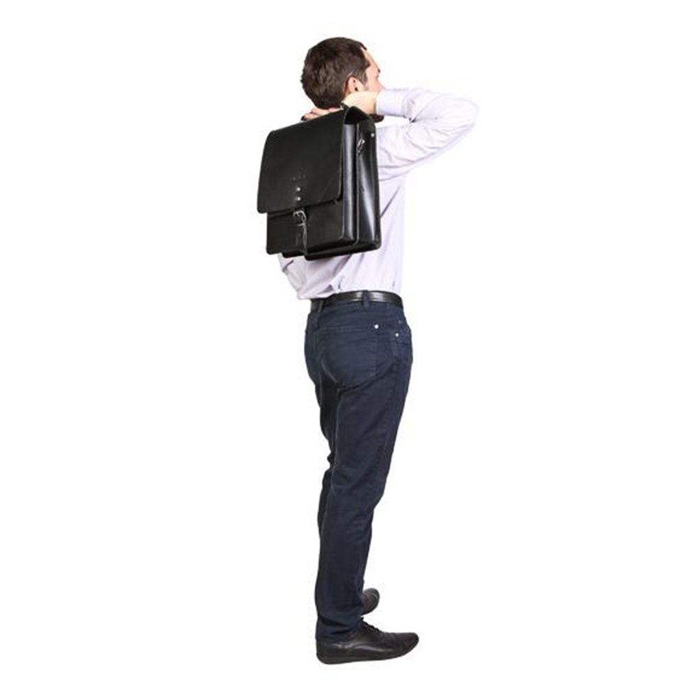 Duża dwukomorowa skórzana raportówka w stylu vintage mieszcząca format A4. Torba dedykowana dla biznesmenów i studentów. Klapa zamykana na tradycyjną klamrę. Pod klapą ukryte mini biuro kieszeń zapinana na zamek, kieszonka na smartfon, miejsce na wizytówki, cztery miejsca na długopisy. Dwie komory z łatwością pomieszczą gabarytowe przedmioty typu: laptop, segregator, teczkę z dokumentami, skoroszyt, itp. Pas nośny z regulowaną długością można odpiąć i dzięki uchwytowi możemy nosić torbę w ręku.