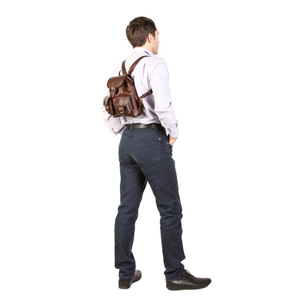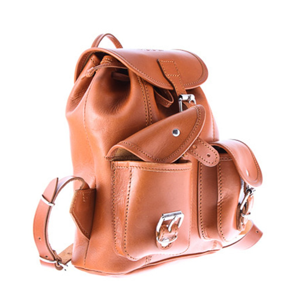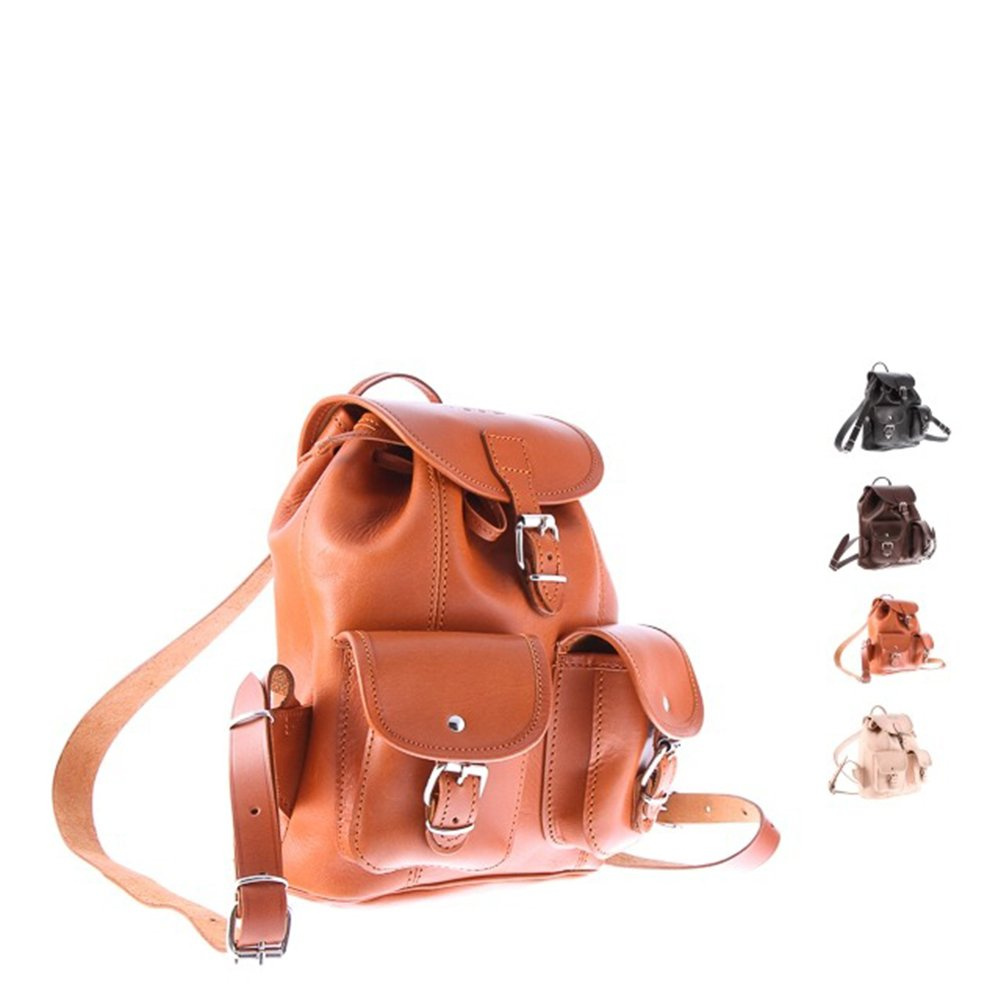 Jednokomorowe wnętrze ściągane paskiem skórzanym i zamykane na małą klamrę. Plecak posiada skórzane szelki o regulowanej długości i uchwyt do noszenia w ręku. Z przodu dwie kieszonki na niezbędne drobiazgi, komórkę, portfel, klucze itp. Przy kieszonce miejsce na długopis.