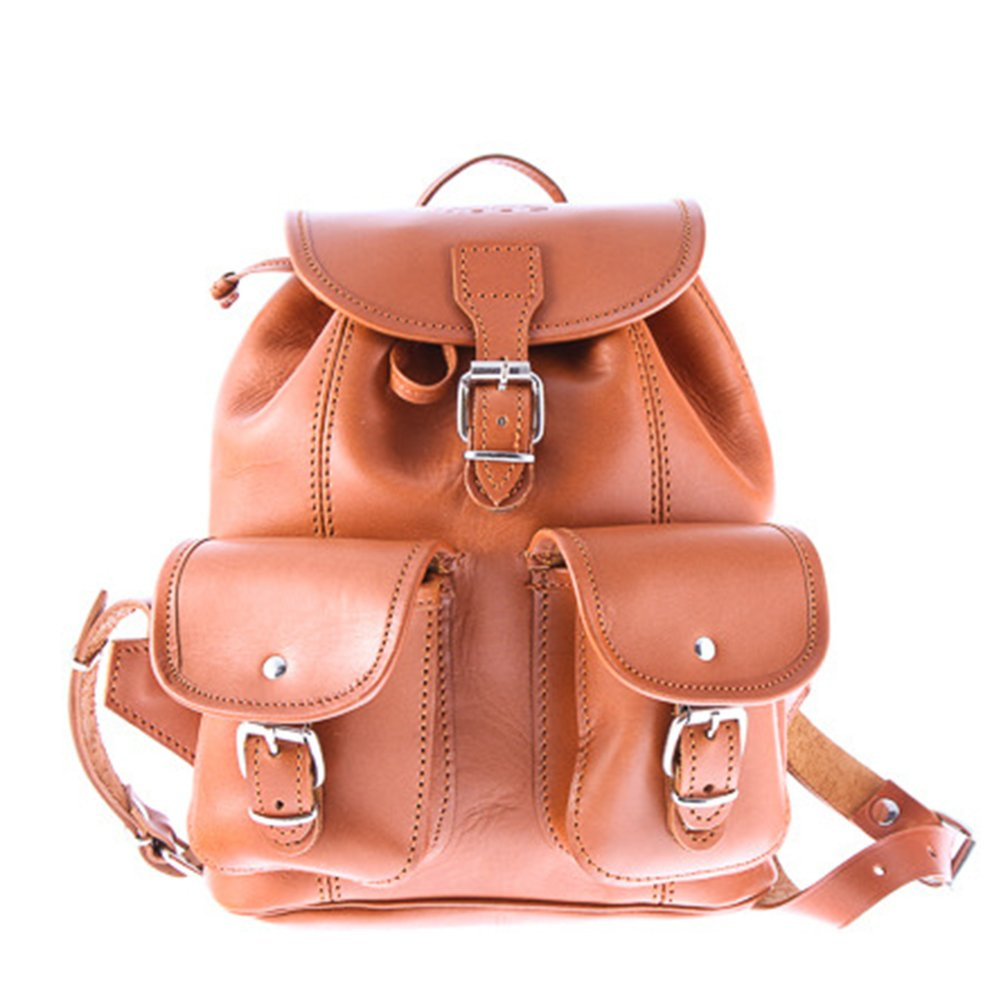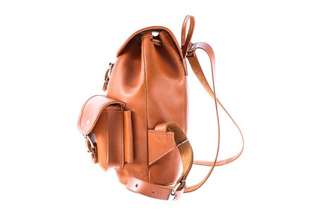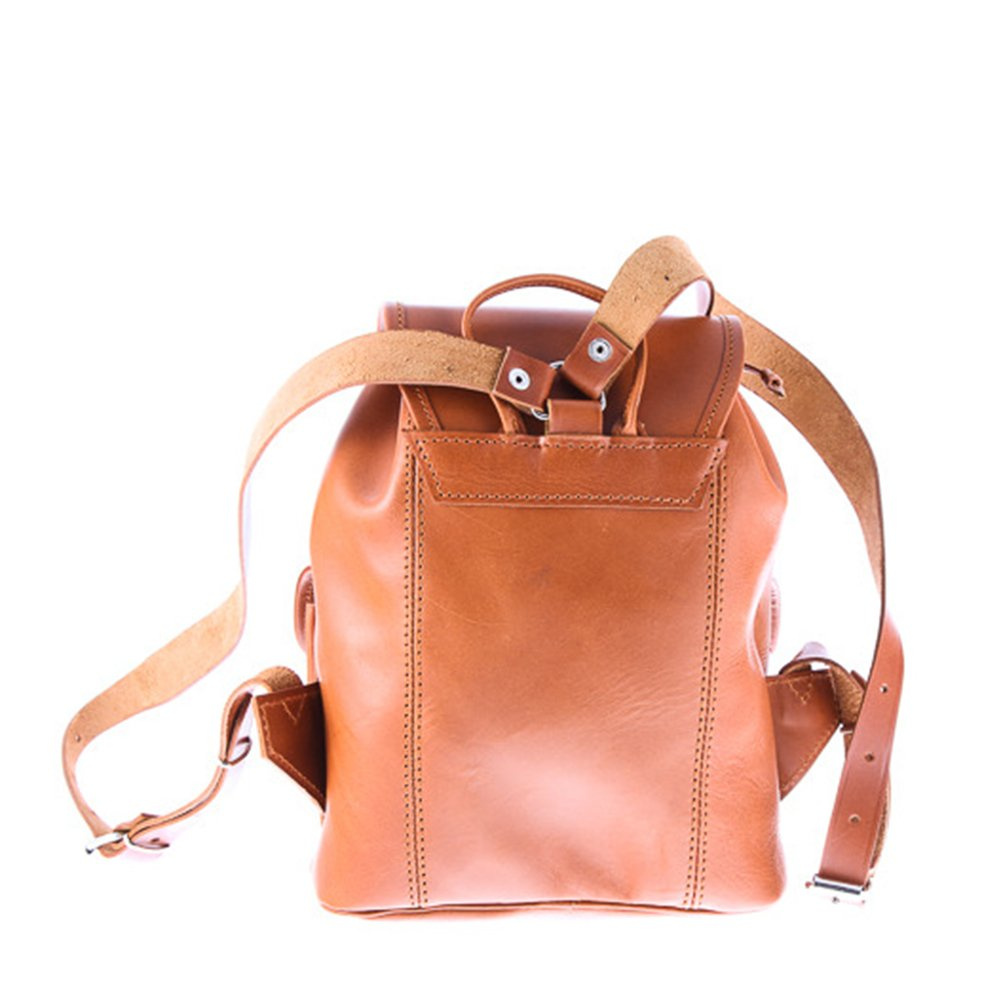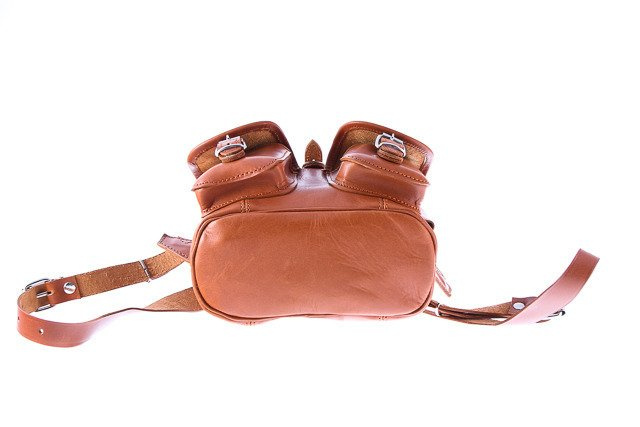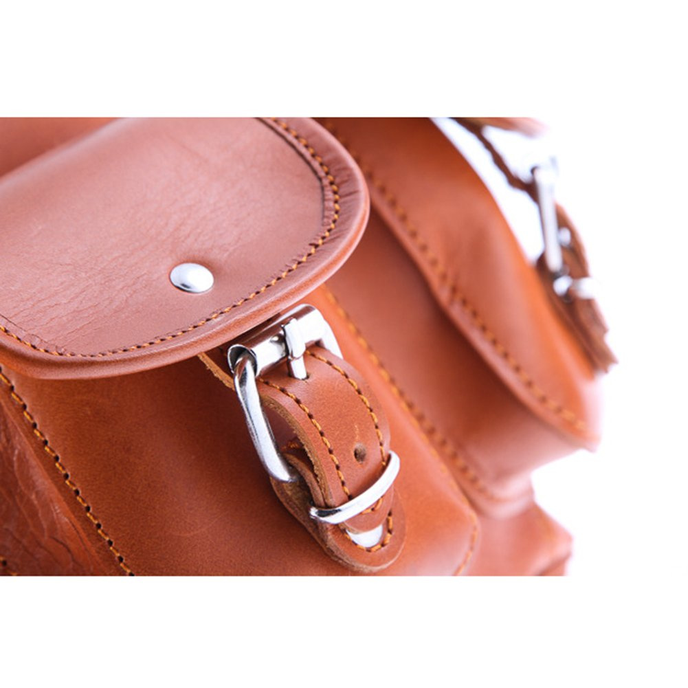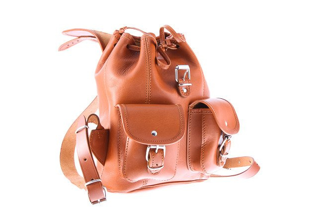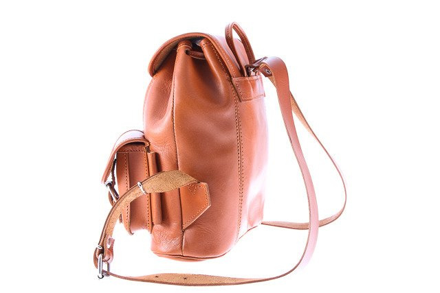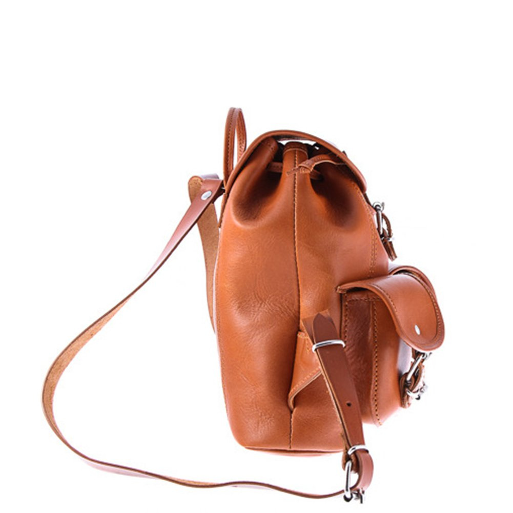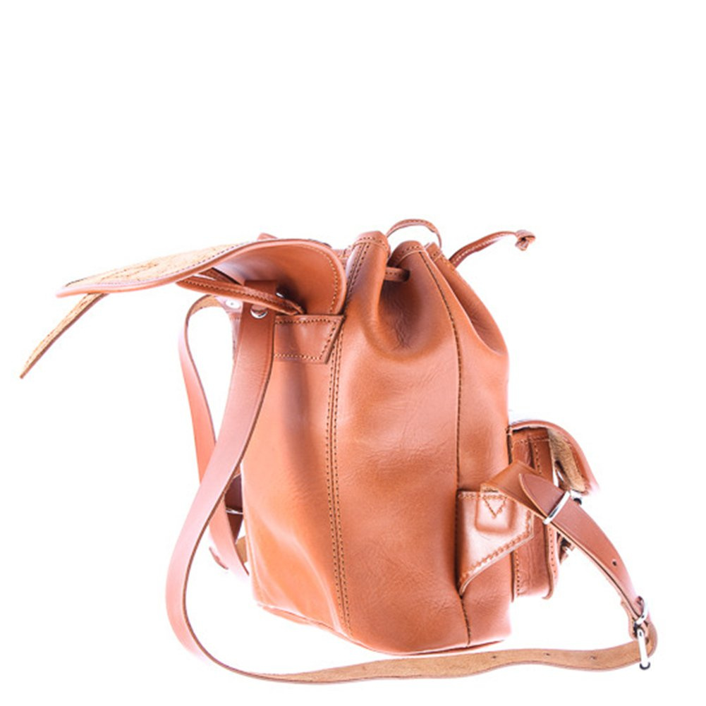 Jednokomorowe wnętrze ściągane paskiem skórzanym i zamykane na małą klamrę. Plecak posiada skórzane szelki o regulowanej długości i uchwyt do noszenia w ręku. Z przodu dwie kieszonki na niezbędne drobiazgi, komórkę, portfel, klucze itp. Przy kieszonce miejsce na długopis.
