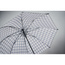 23-calowy, automatycznie otwierany, wiatroodporny parasol z 190T pongee z wzorem w kratkę na wewnątrznej stronie. Rama z włókna szklanego z czarnym, platerowanym trzonem i plastikowymi końcówkami. Zakrzywiony uchwyt wykończony gumą. Ręczne zamknięcie.