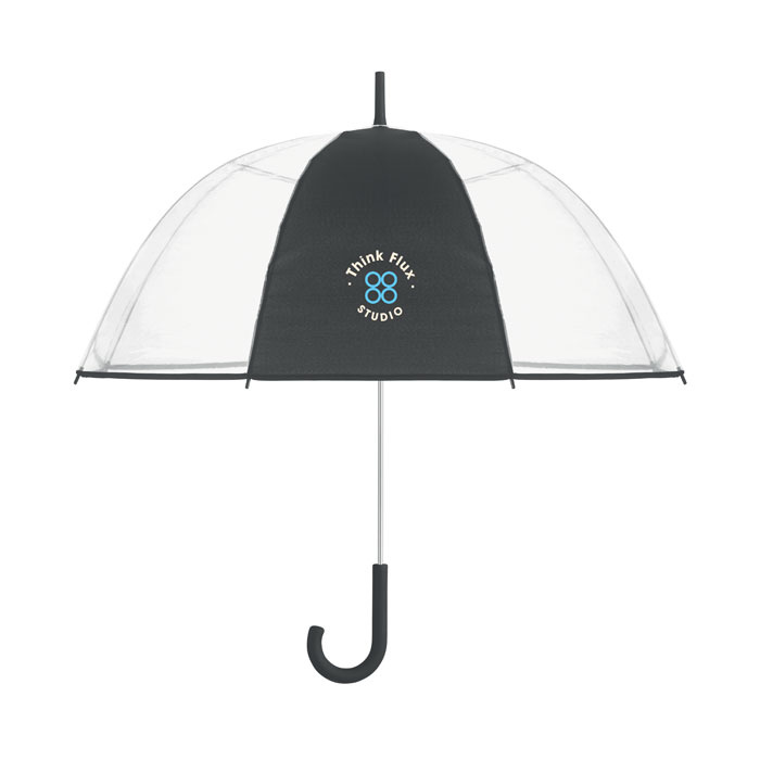 23-calowy prosty parasol z POE z 1 panelem z poliestru do nadruku. Otwierany ręcznie. Włókno szklane, żebra i rama. Chromowany trzon z plastikowymi końcówkami. Gumowany uchwyt.
