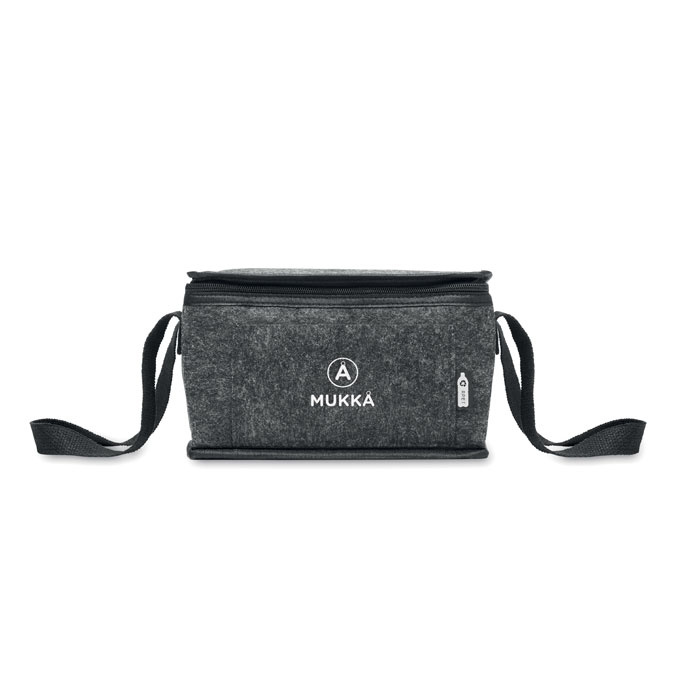 Torba chłodząca z filcu RPET z przednią kieszenią. Filc RPET o grubości 1 mm i laminowana folia aluminiowa o grubości 3 mm. Pojemność: 5 l.