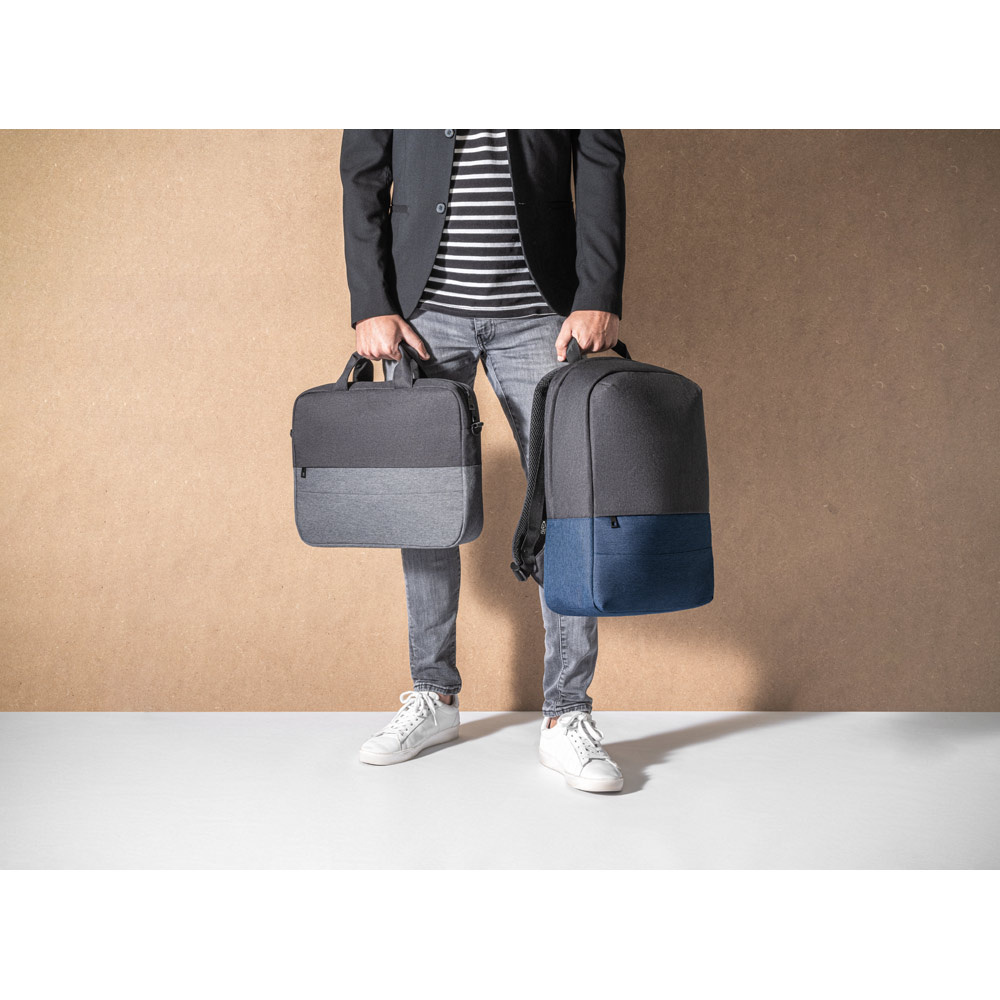 Plecak antykradzieżowy wykonany z wysokiej gęstości poliestru 600D pochodzącego z recyklingu. Posiada wyściełaną komorę główną z kieszenią na laptopa do 15.6„ i kieszeń na tablet do 10.1”. Plecak ma 1 przednią kieszeń zapinaną na zamek i boczną kieszeń do przenoszenia butelki. Na plecach znajduje się pasek do wózka na wypadek, gdyby był potrzebny. Pojemność do 16 l. 290 x 430 x 120 mm