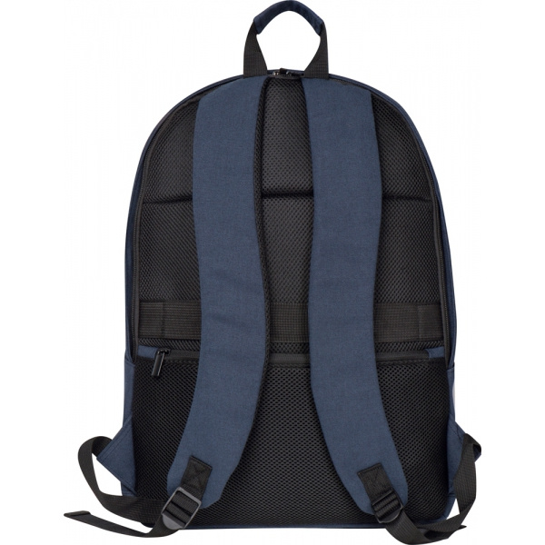 Plecak wykonany z bawełny pochodzącej z recyklingu, posiada watowane plecy i szelki, kieszeń na laptopa, dużą kieszeń wewnętrzną oraz frontową kieszonkę zapinaną na zamek.