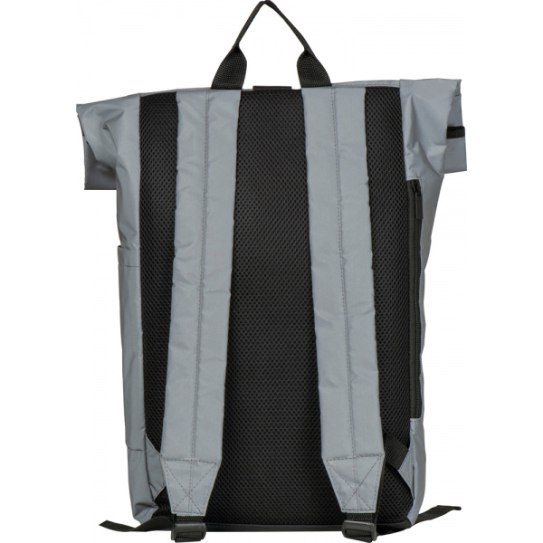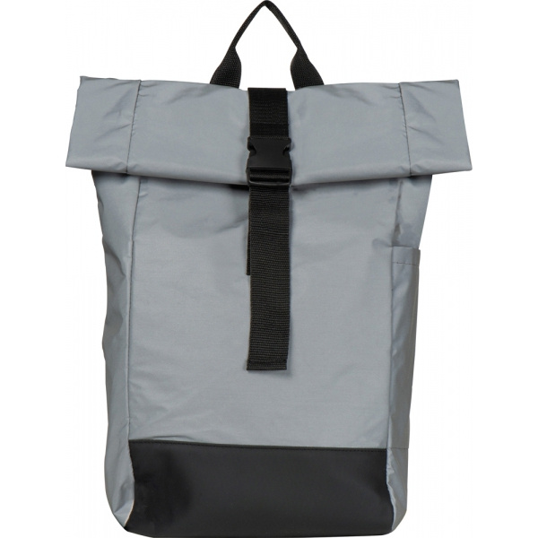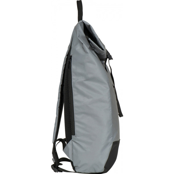 Plecak kurierski wykonany w całości z materiału odblaskowego, posiada watowane plecy, dużą komorę główną z rolowanym zamknięciem i boczną kieszonkę zamykaną na zamek. Pojemnośc 15 litrów.