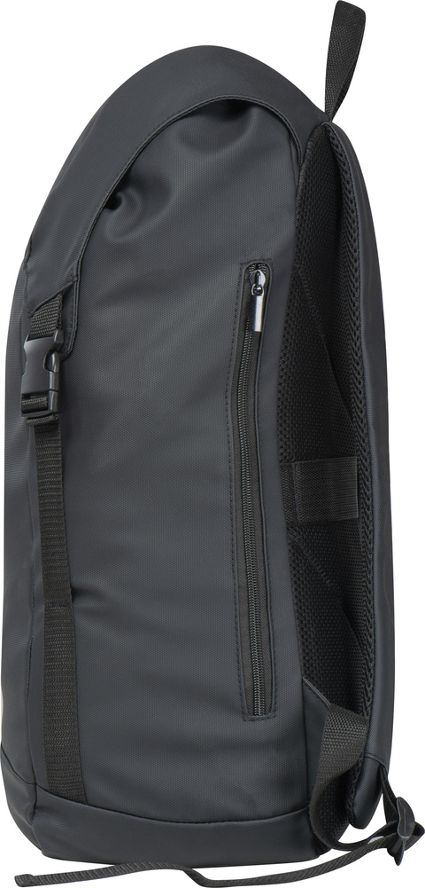 Duży plecak wykonany z poliestru z wodoodporną powłoką PU. Oprócz dużej komory głównej z przegrodą na laptopa i wyściełanym tyłem, posiada ona również dwie przegrody zapinane na zamek po prawej i lewej stronie na zewnątrz, a także sznurek do zamykania i klapkę, która utrzymuje zawartość suchą podczas deszczu.