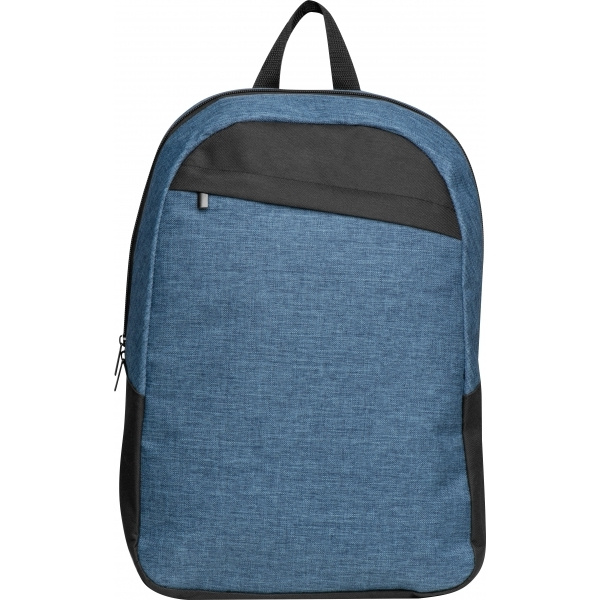 Plecak wykonany z poliestru 600D, z dużą przegrodą główną, mniejszą kieszonką z przodu.
