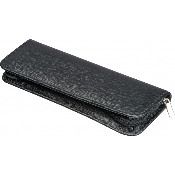 Piórnik na dwa przybory piśmiennicze, wykonany z PU pochodzącego z recyklingu, zamykany na zamek.