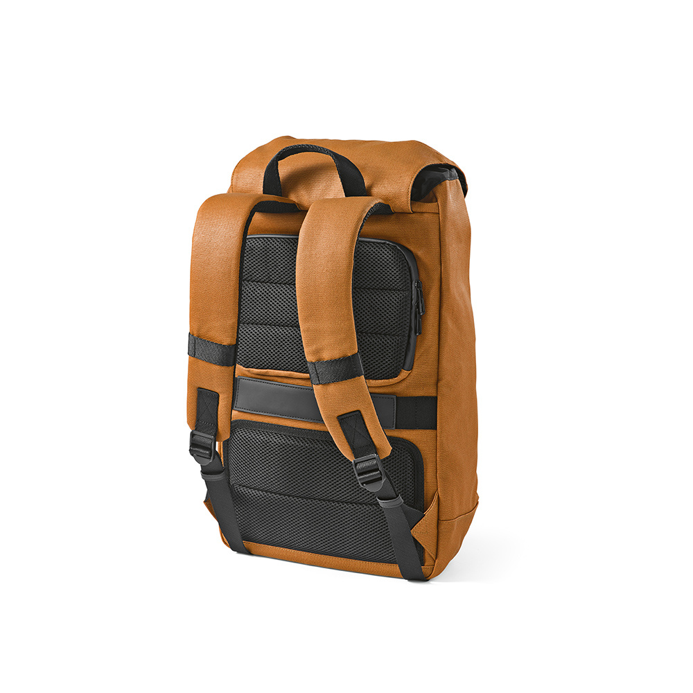 Ten 20-litrowy plecak jest wykonany z bawełnianego płótna z recyklingu o gramaturze 240 g/m2 z powłoką PU, dzięki czemu jest wodoodporny. Ma dużą pojemność, a klamra "G" sprawia, że zamknięcie jest wyjątkowe. Odpinana przednia naszywka umożliwia personalizację. W komplecie mniejsza przednia kieszeń zapinana na zamek.