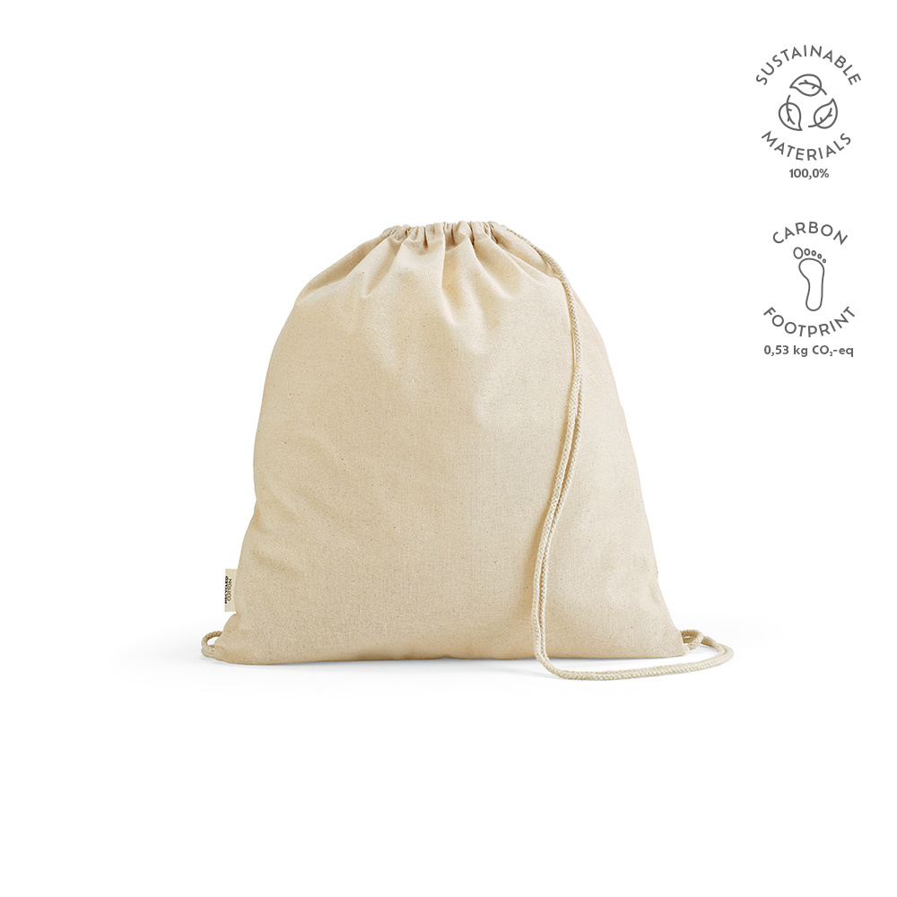 Ta torba jest (10L) wykonana z mieszanki 70% bawełny z recyklingu i 30% rPET, dzięki czemu jest lekka i przyjazna dla środowiska. Dzięki wygodnej opłacie 140 g / m2 i sznurkom z bawełny pochodzącej z recyklingu, ta torba jest świadomym ekologicznie wyborem, ale też dodaje żywych kolorów, aby rozjaśnić Twój dzień.