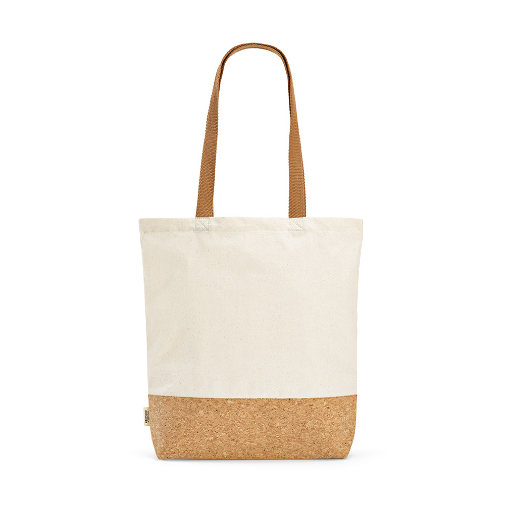 Świadome ekologicznie zakupy są łatwe dzięki naszej torbie z bawełny z recyklingu (70% bawełny z recyklingu i 30% rPET). Posiada wytrzymałe dno z korka, gramaturę 180 g/m² i wygodne uchwyty o długości 65 cm. Rozmiar: 38 x 40 x 8 cm (15L). Dokonaj przyjaznego dla środowiska wyboru już dziś.